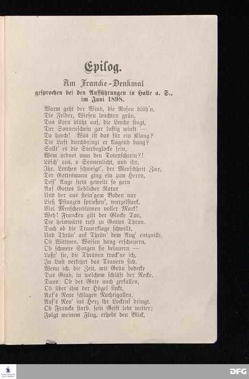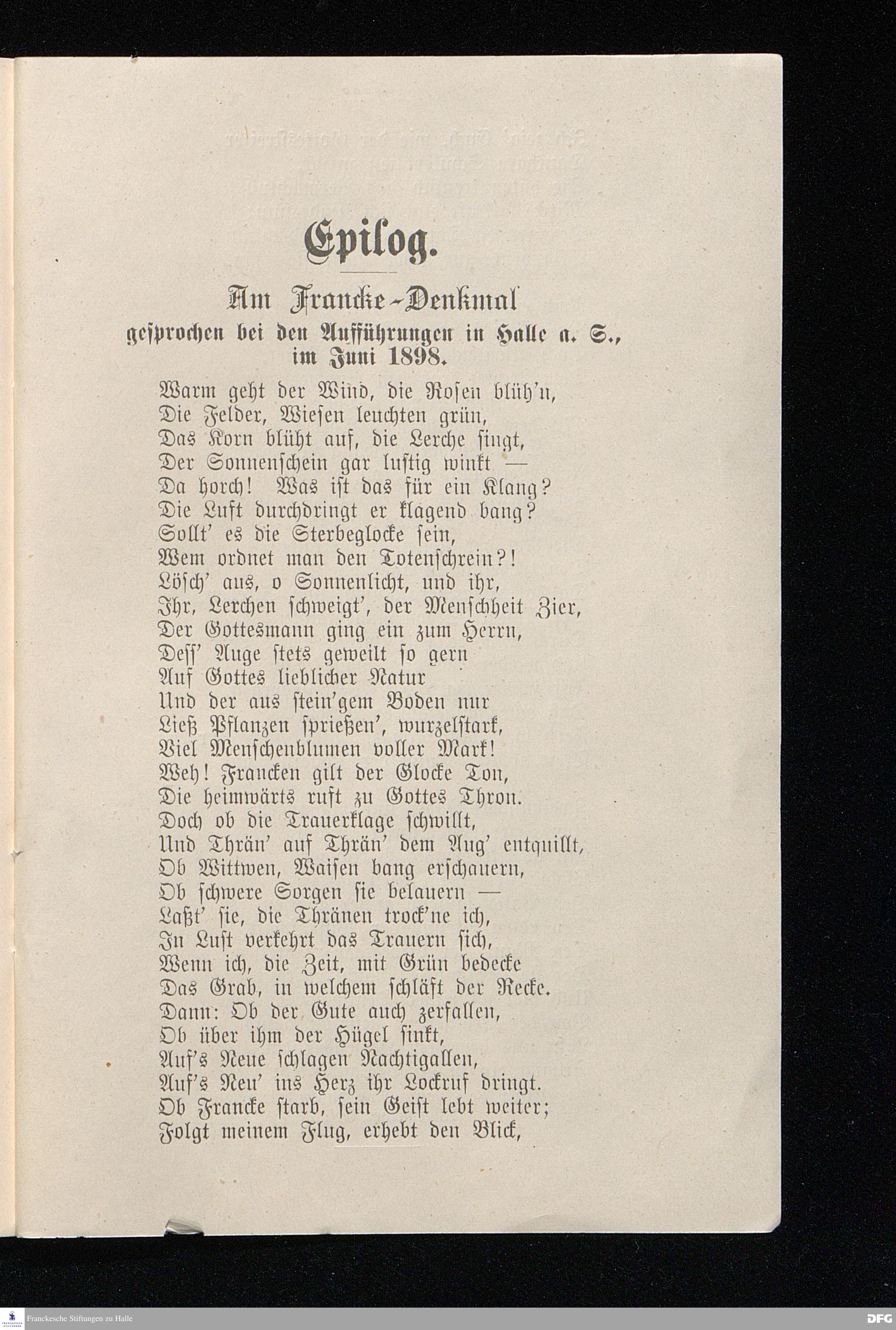 August Hermann Francke. Festspiel in sieben Vorgängen. Zum ersten Male aufgeführt zum 200jährigen Jubiläum der Francke'schen Stiftungen im Juni 1898.