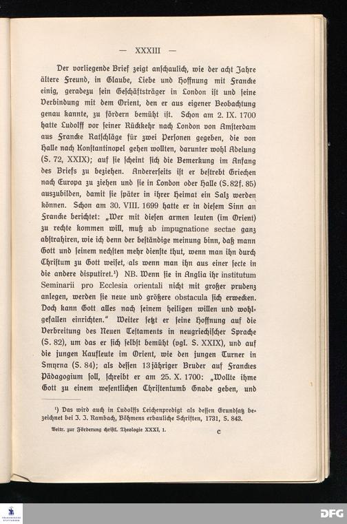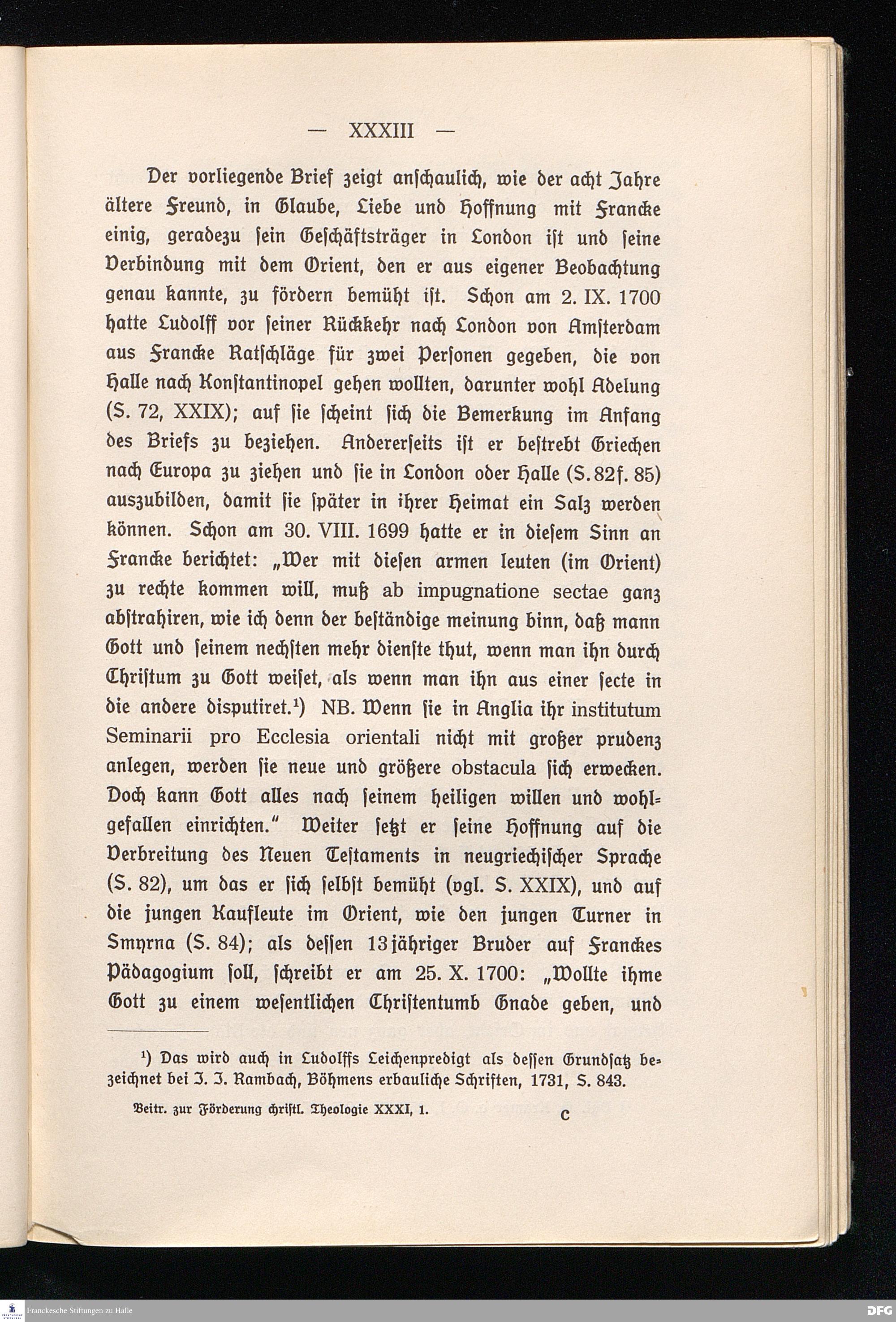 I. Ein Brief Franckes an seinen Oheim Dr. Gloxin aus dem Jahre 1688.