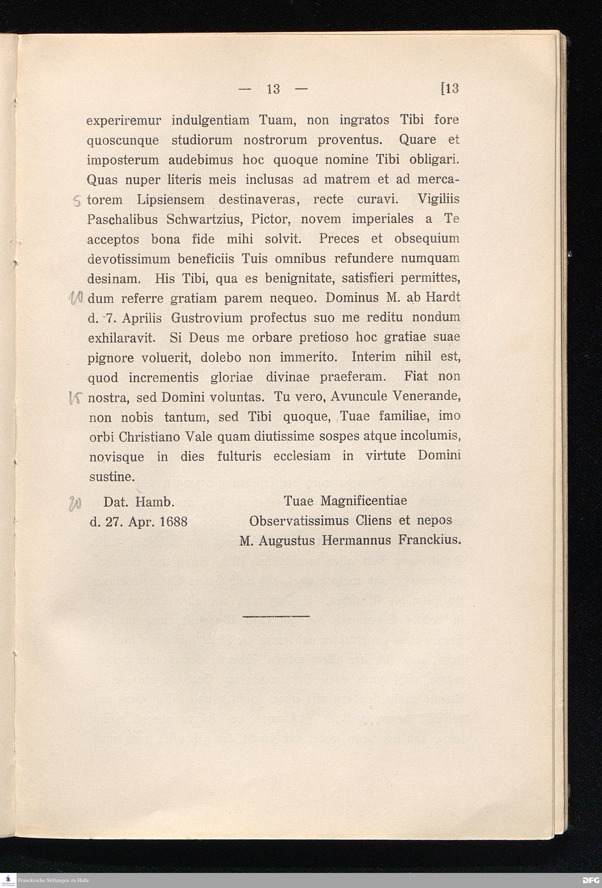 I. Ein Brief Franckes an seinen Oheim Dr. Gloxin aus dem Jahre 1688.
