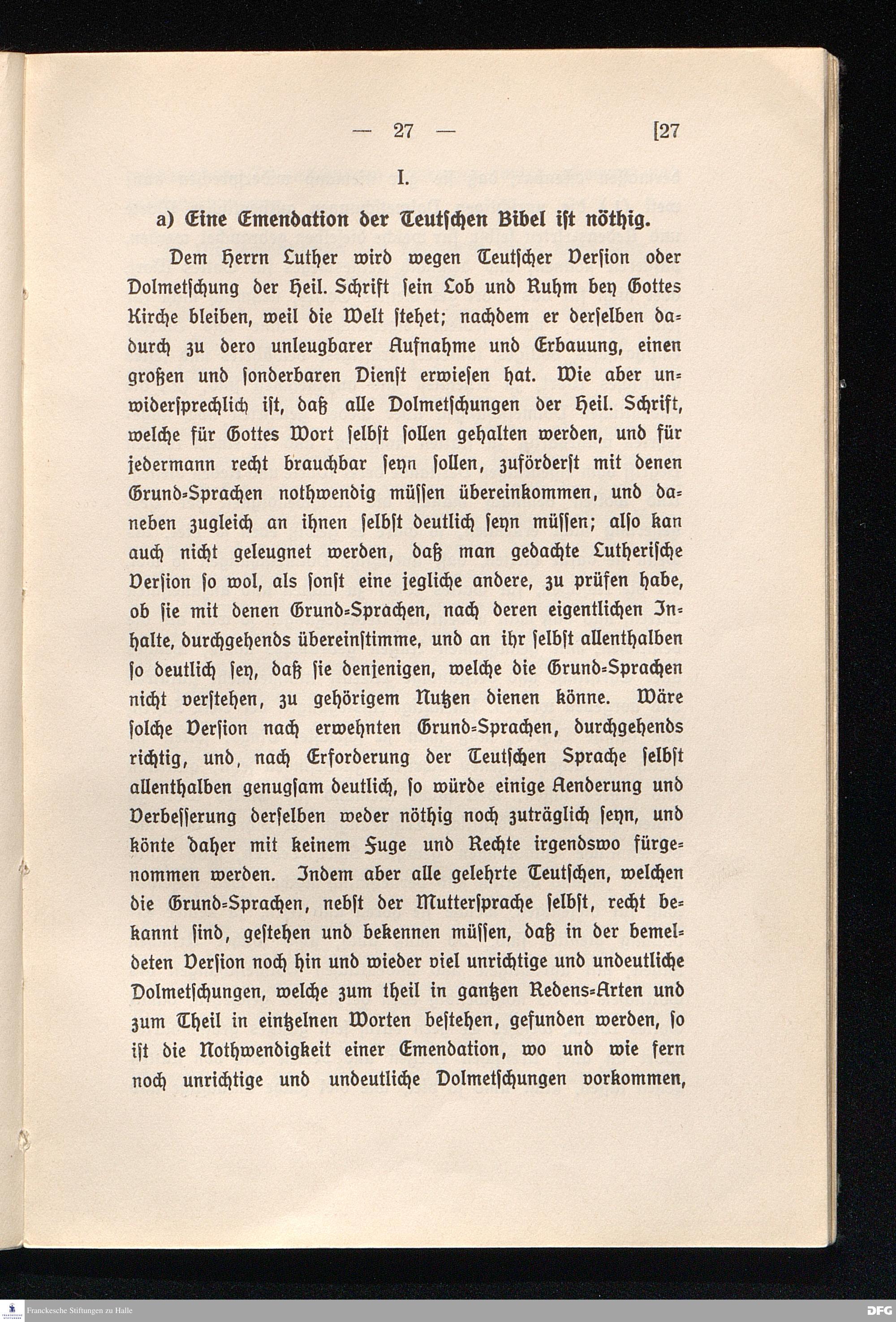 III. Kurtzes Proiect unparteyischer privat-Gedanken von einer Emendation der Teutschen Bibel.