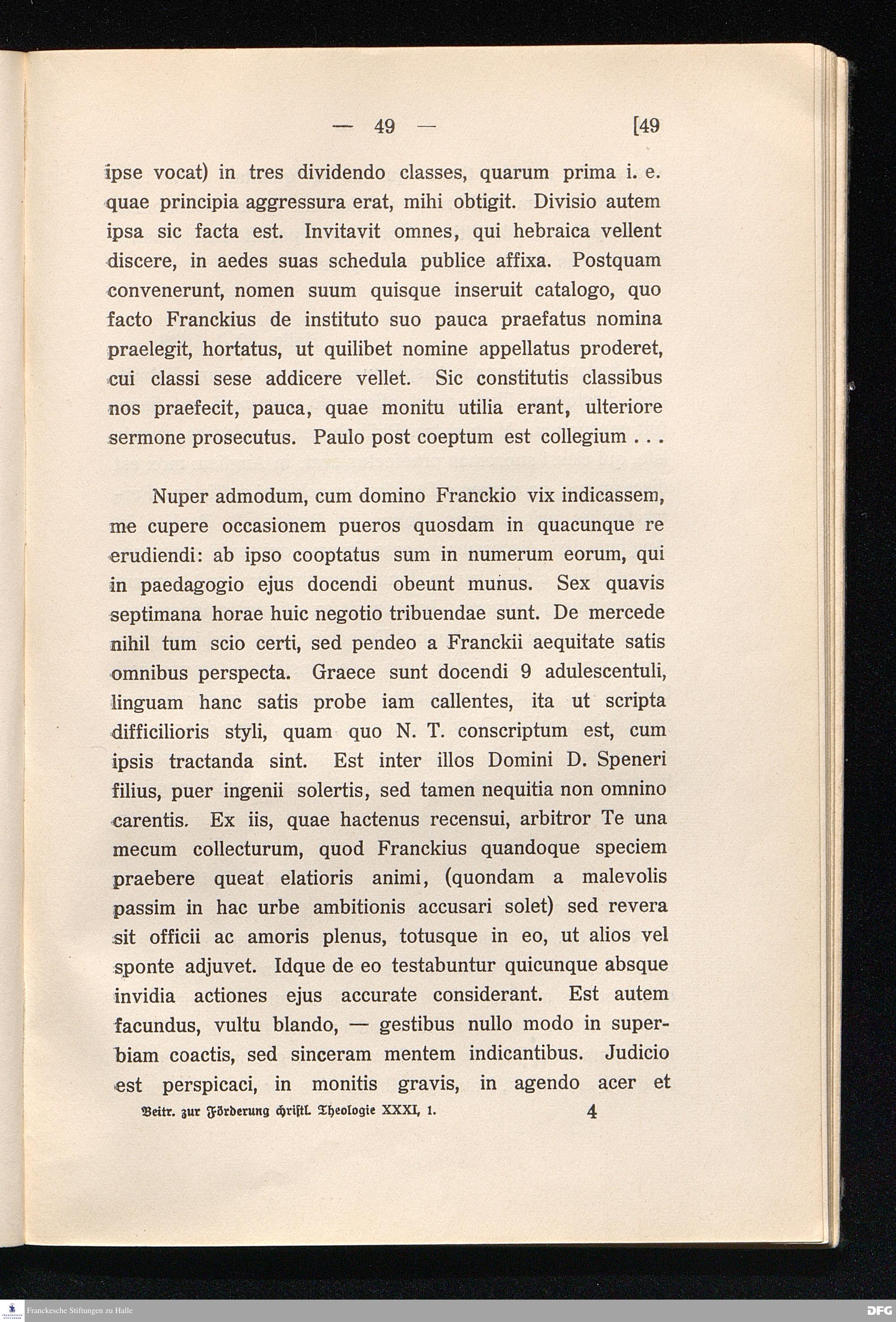 I. Ein Brief Franckes an seinen Oheim Dr. Gloxin aus dem Jahre 1688.