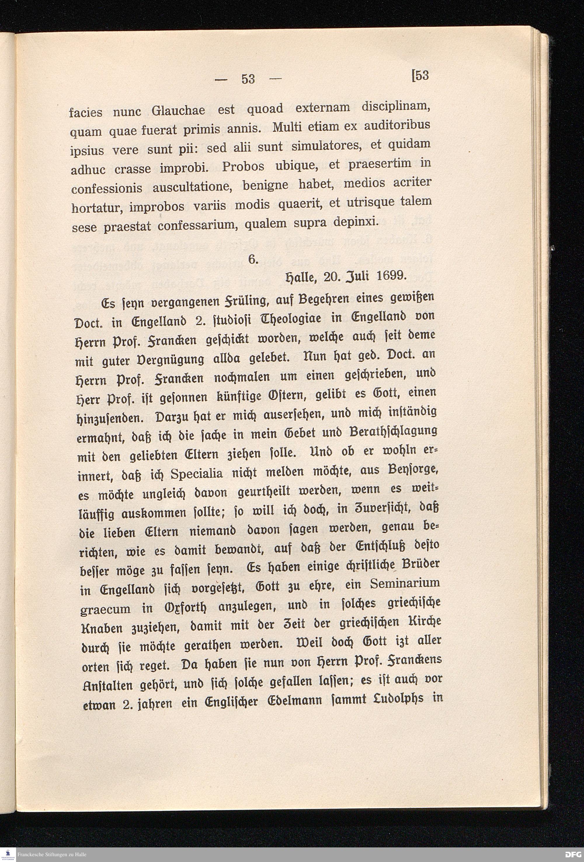 I. Ein Brief Franckes an seinen Oheim Dr. Gloxin aus dem Jahre 1688.