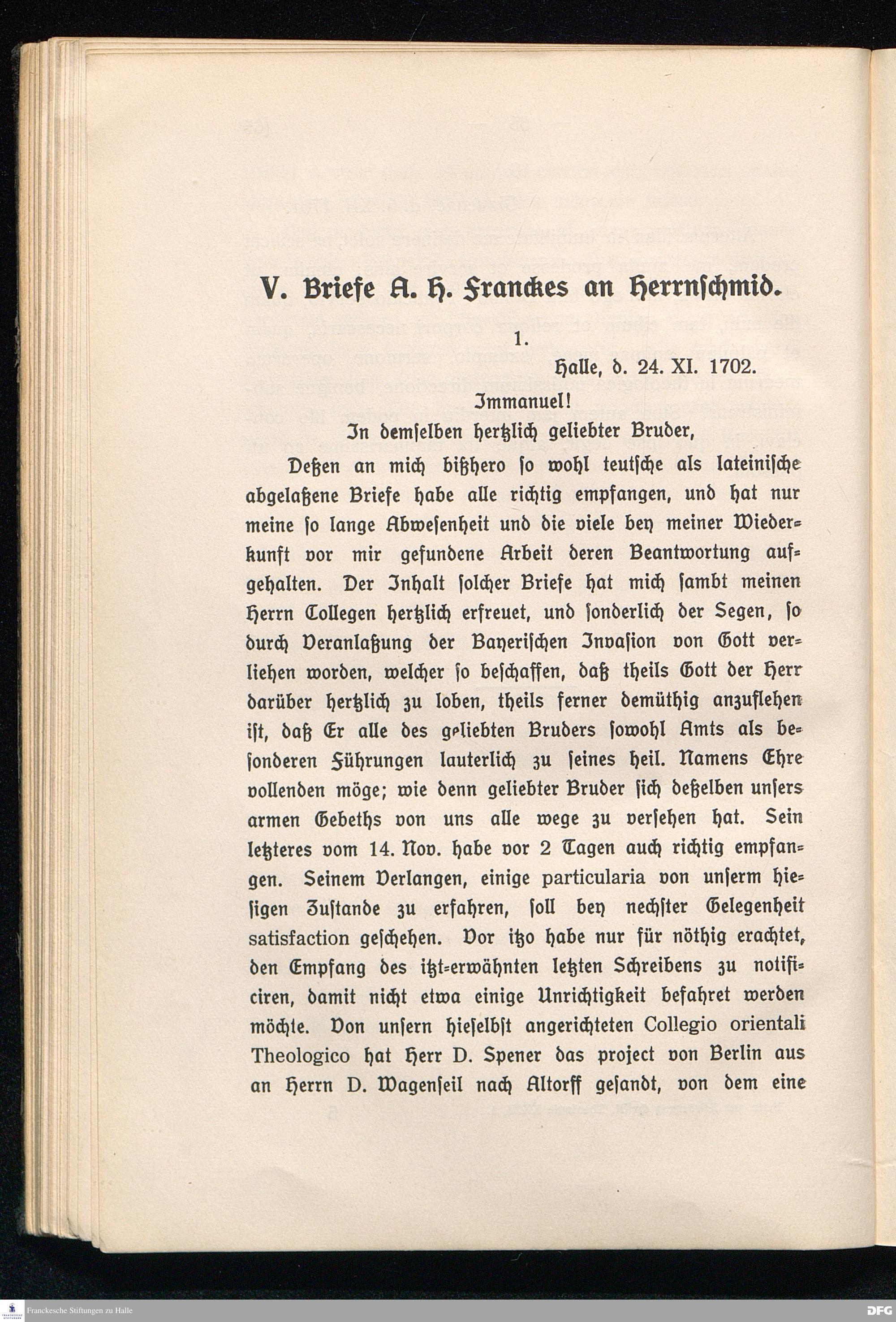 I. Ein Brief Franckes an seinen Oheim Dr. Gloxin aus dem Jahre 1688.
