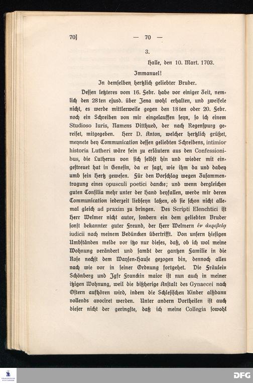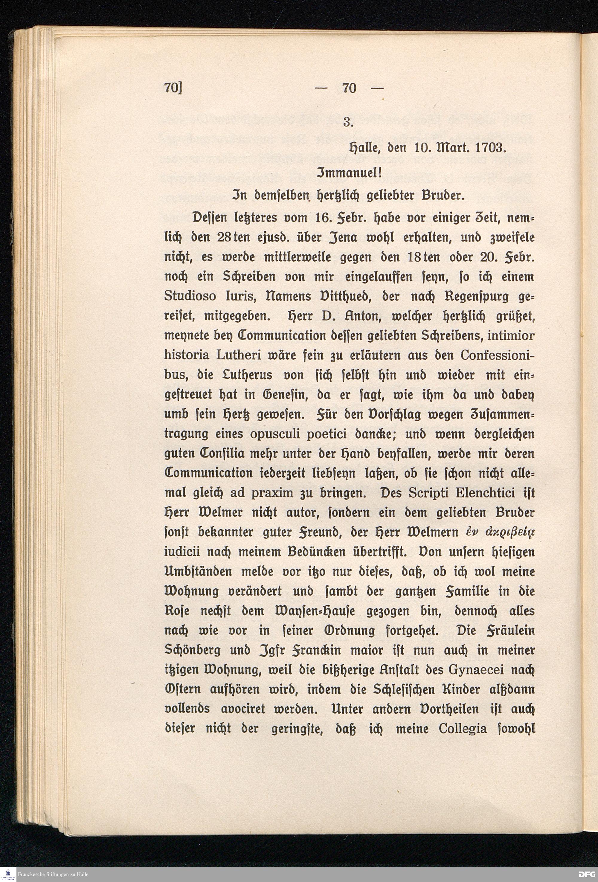 I. Ein Brief Franckes an seinen Oheim Dr. Gloxin aus dem Jahre 1688.
