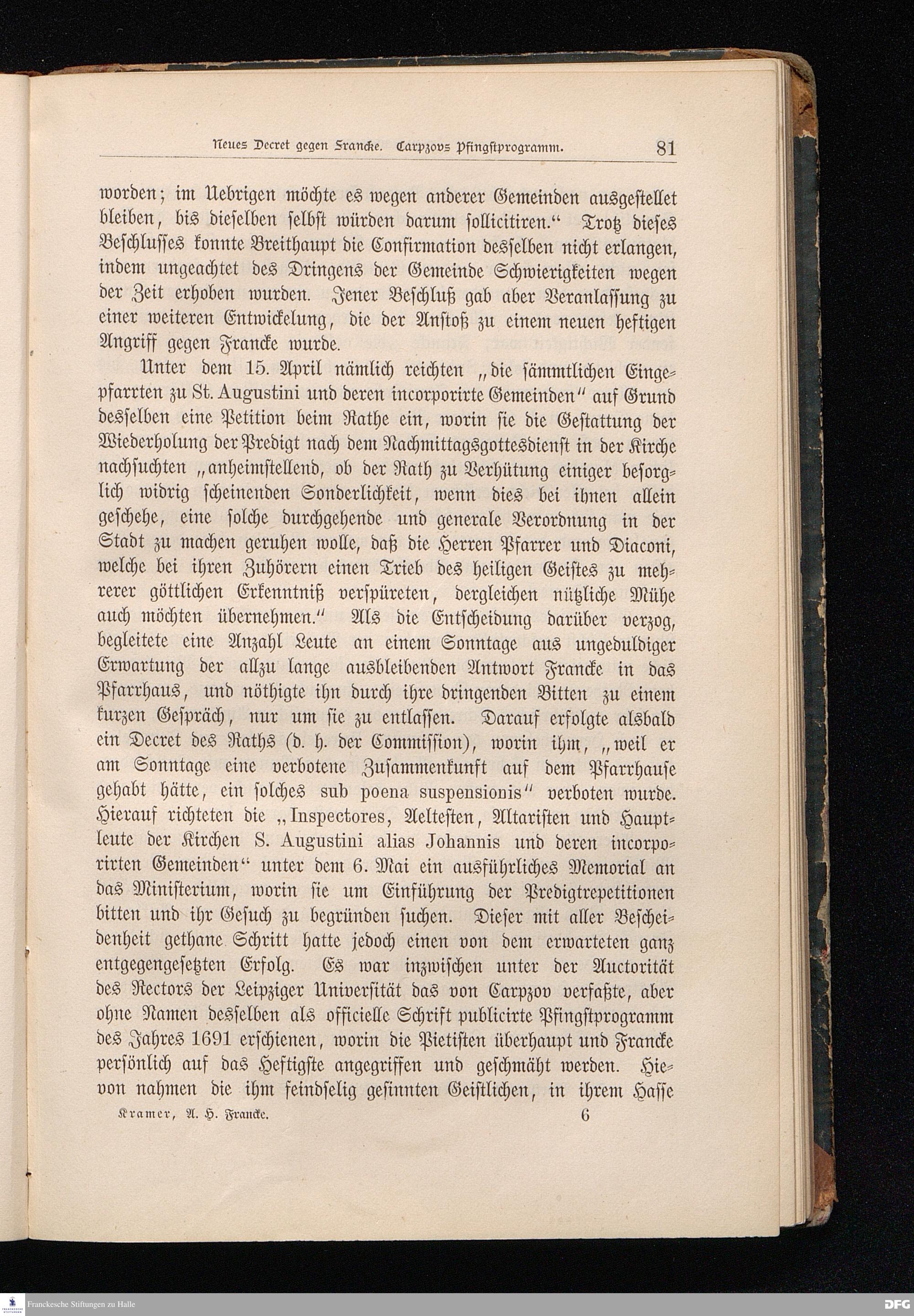 August Hermann Francke. Ein Lebensbild. Theil 1. Mit einem Bildniß Franckes.