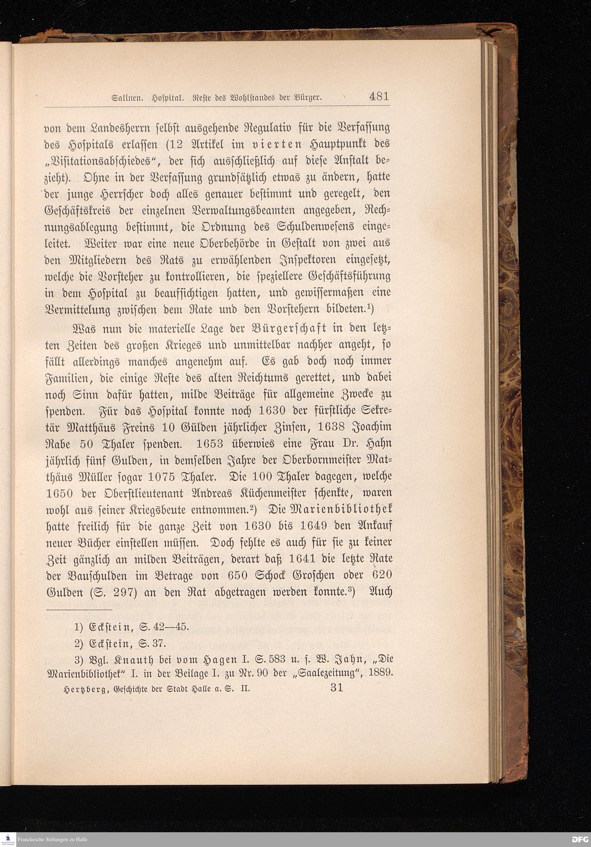Drittes Kapitel. Emporkommen und Einführung der neuen Elemente, auf denen die spätere Blüte der Stadt Halle beruht. Finanzielle Entlastung der Stadt.