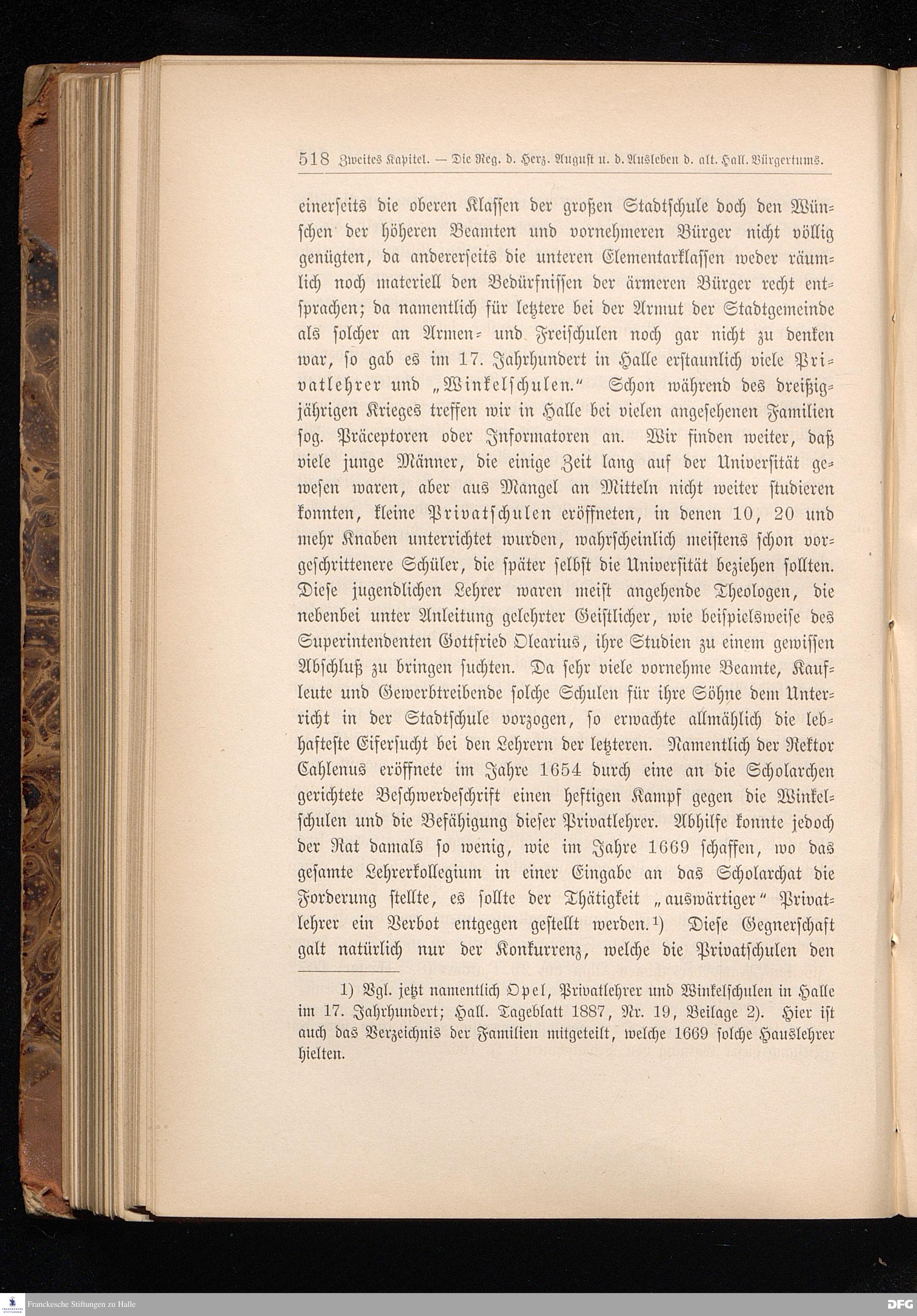 Zweites Kapitel. Die Regierung des Herzogs August und das Ausleben des alten Hallischen Bürgertums.