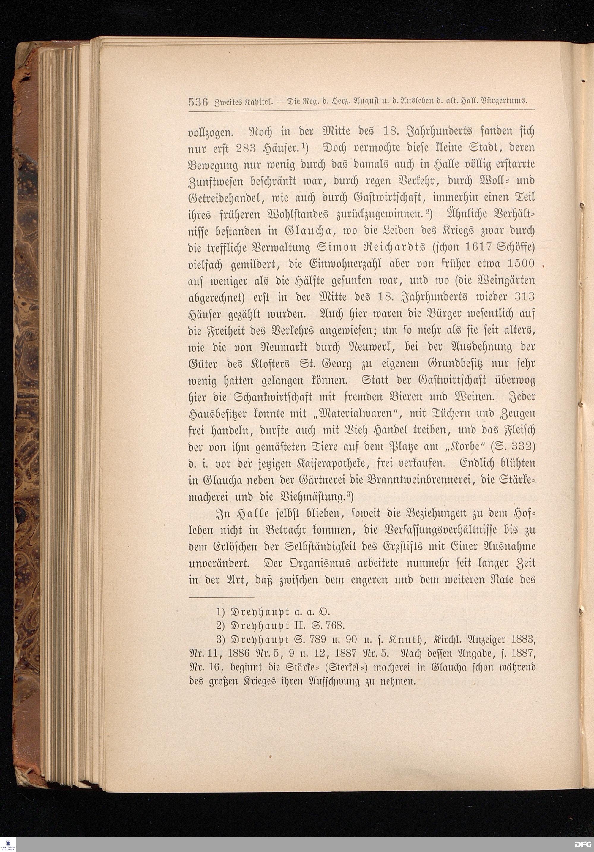 Drittes Kapitel. Emporkommen und Einführung der neuen Elemente, auf denen die spätere Blüte der Stadt Halle beruht. Finanzielle Entlastung der Stadt.