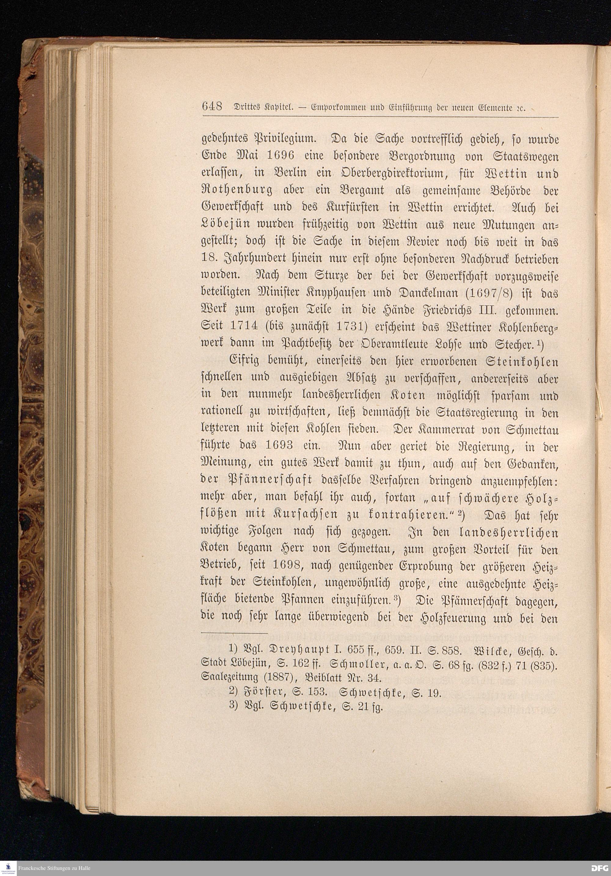 Drittes Kapitel. Emporkommen und Einführung der neuen Elemente, auf denen die spätere Blüte der Stadt Halle beruht. Finanzielle Entlastung der Stadt.