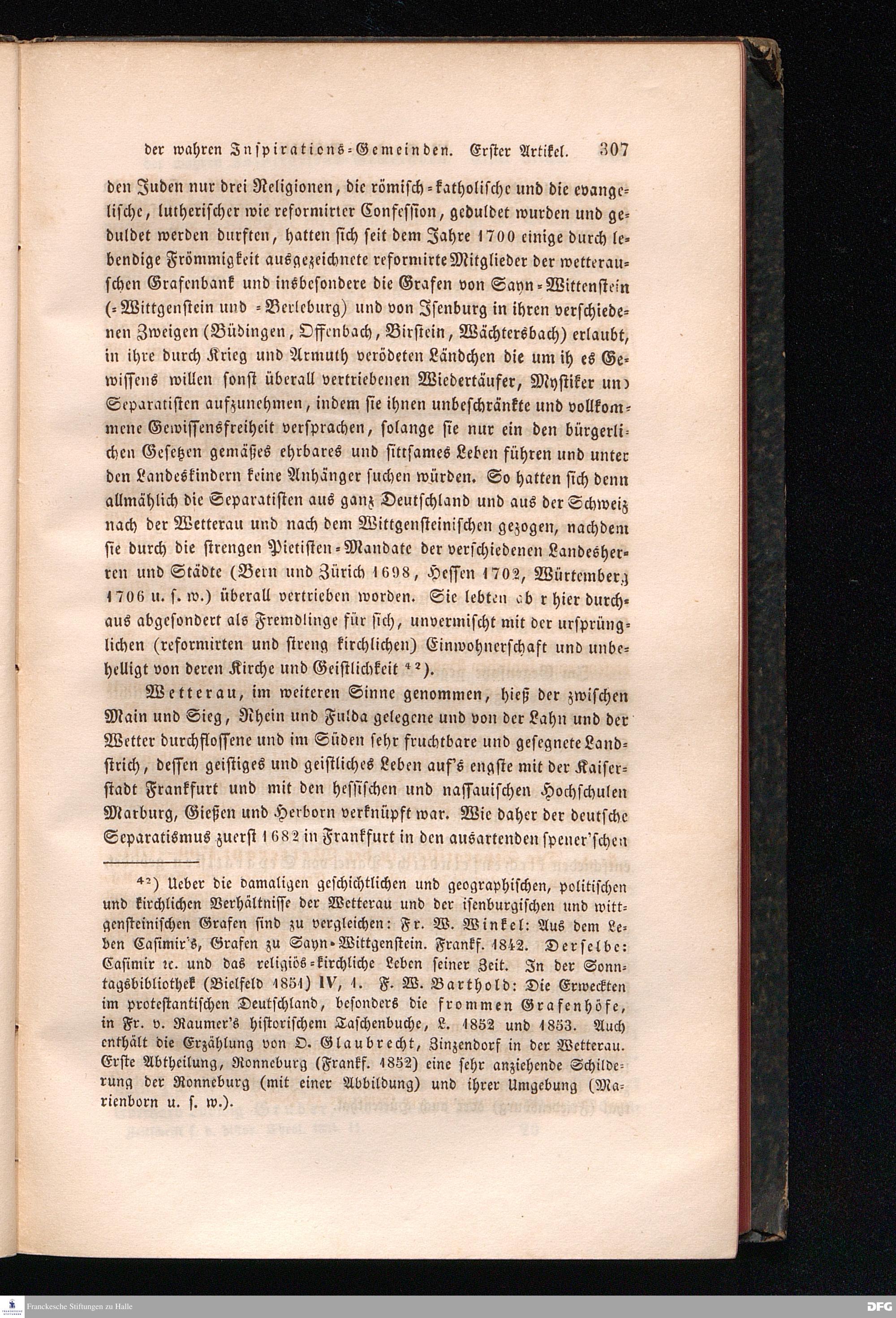 §. 5. Die Separatisten in der Wetterau: 1700-1714.