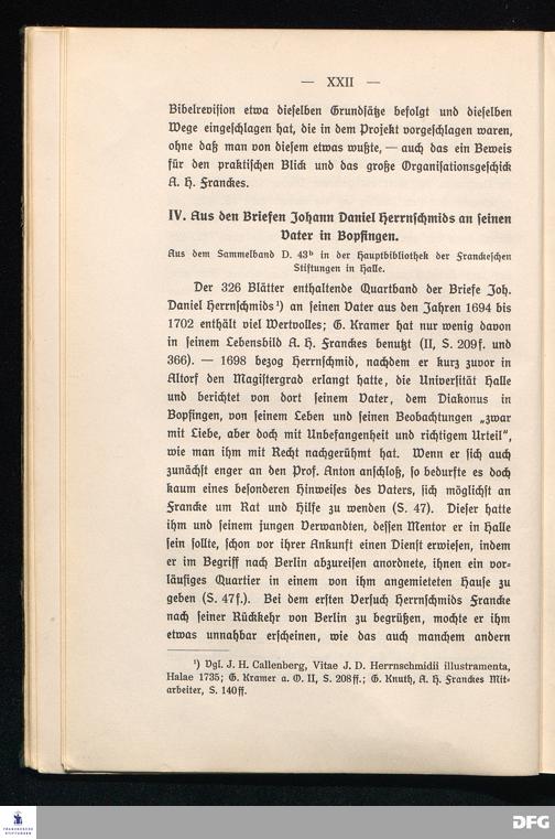 IV. Aus den Briefen Johann Daniel Herrnschmids an seinen Vater in Bopfingen.