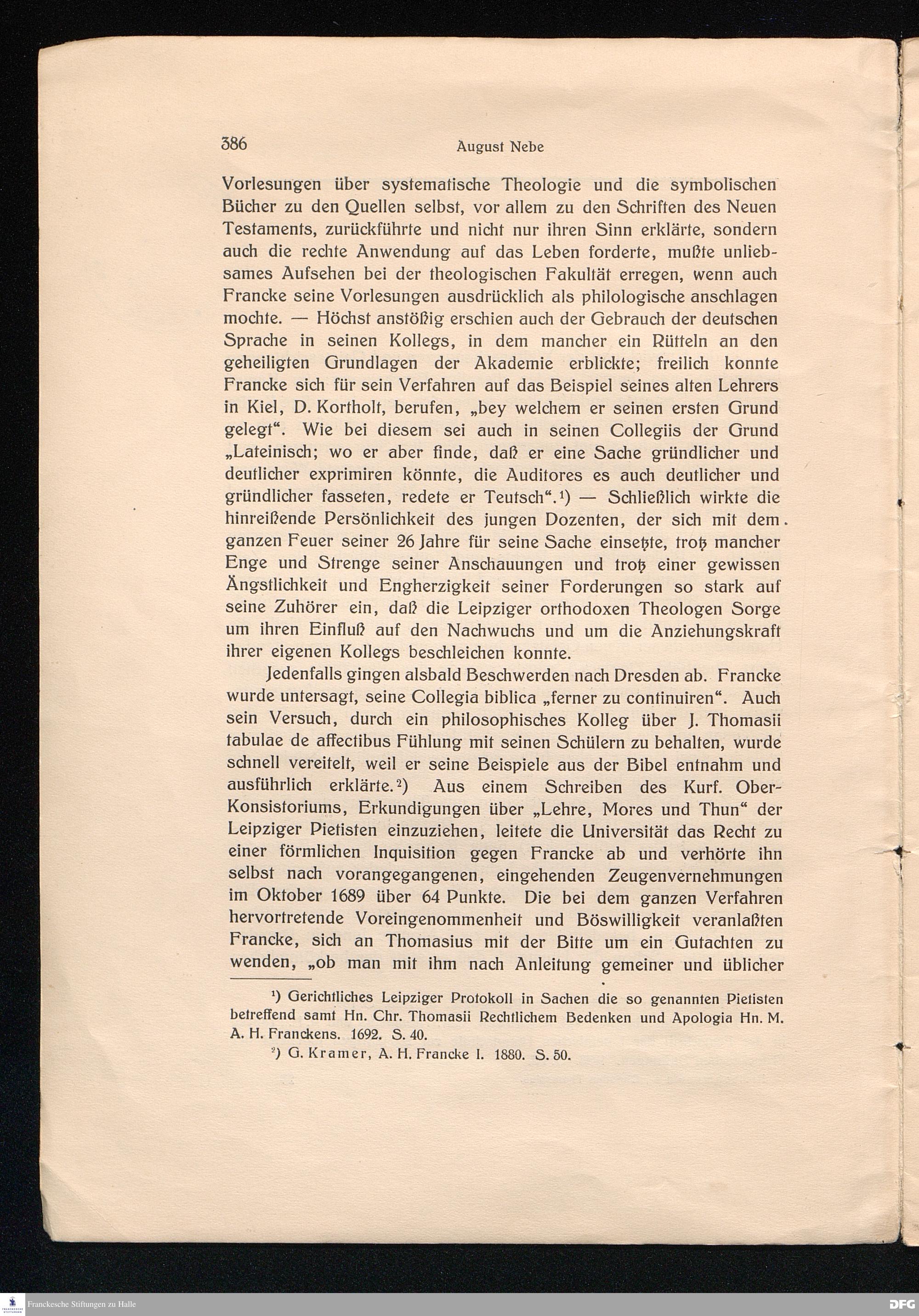 Thomasius in seinem Verhältnis zu A. H. Francke.