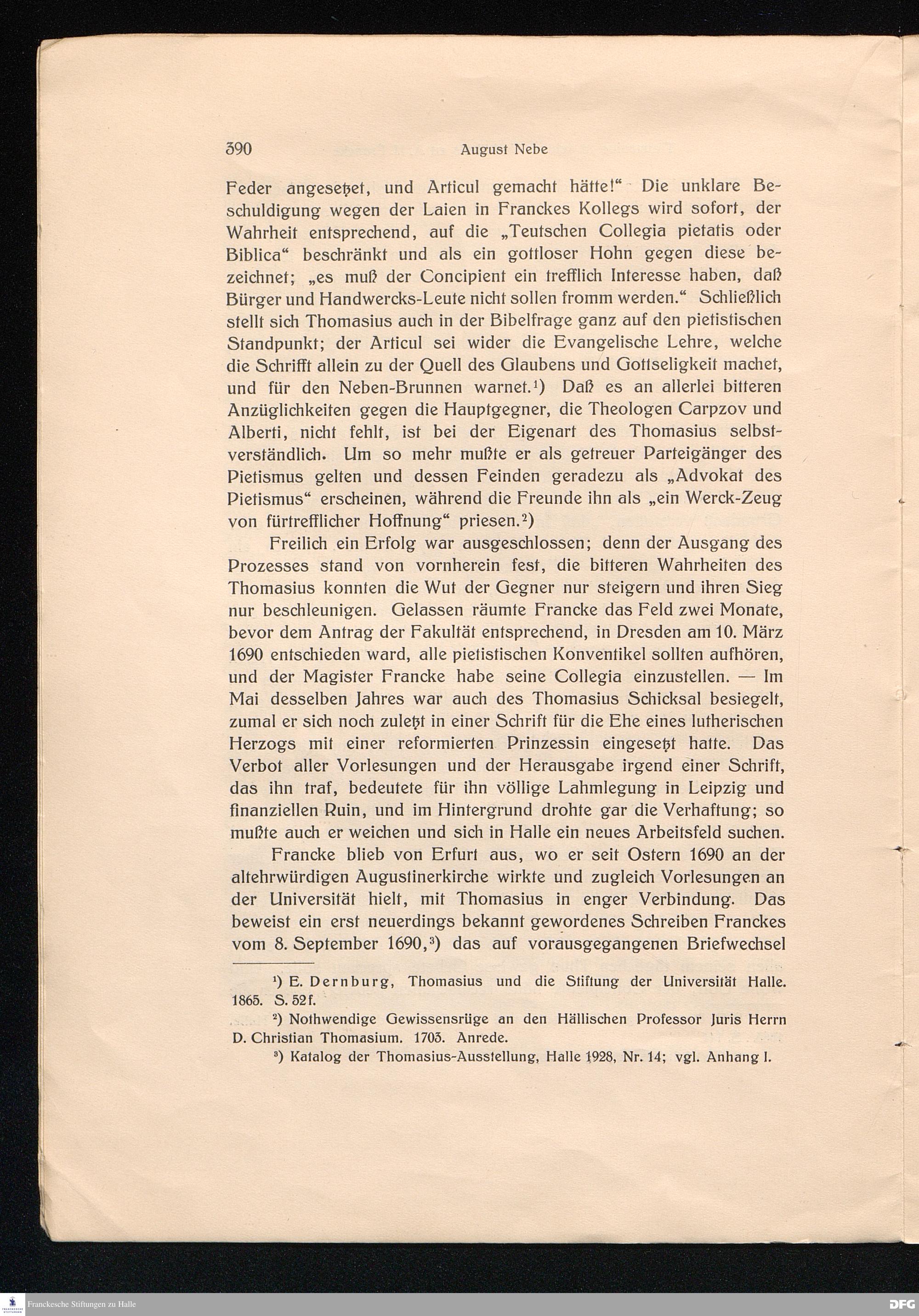 Thomasius in seinem Verhältnis zu A. H. Francke.