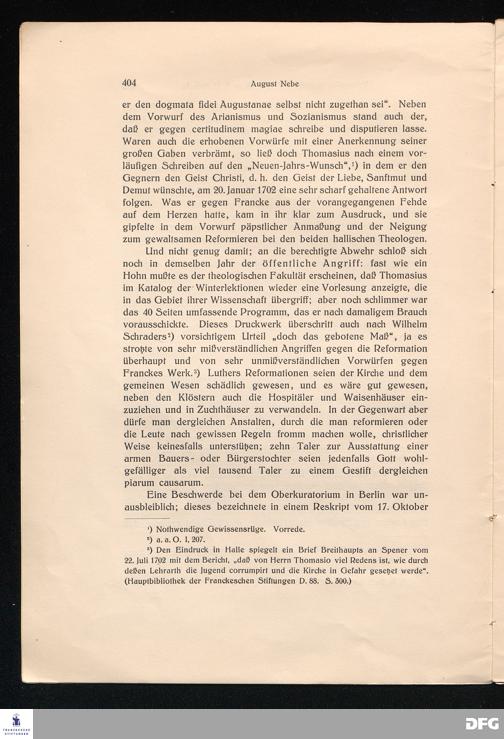 Thomasius in seinem Verhältnis zu A. H. Francke.