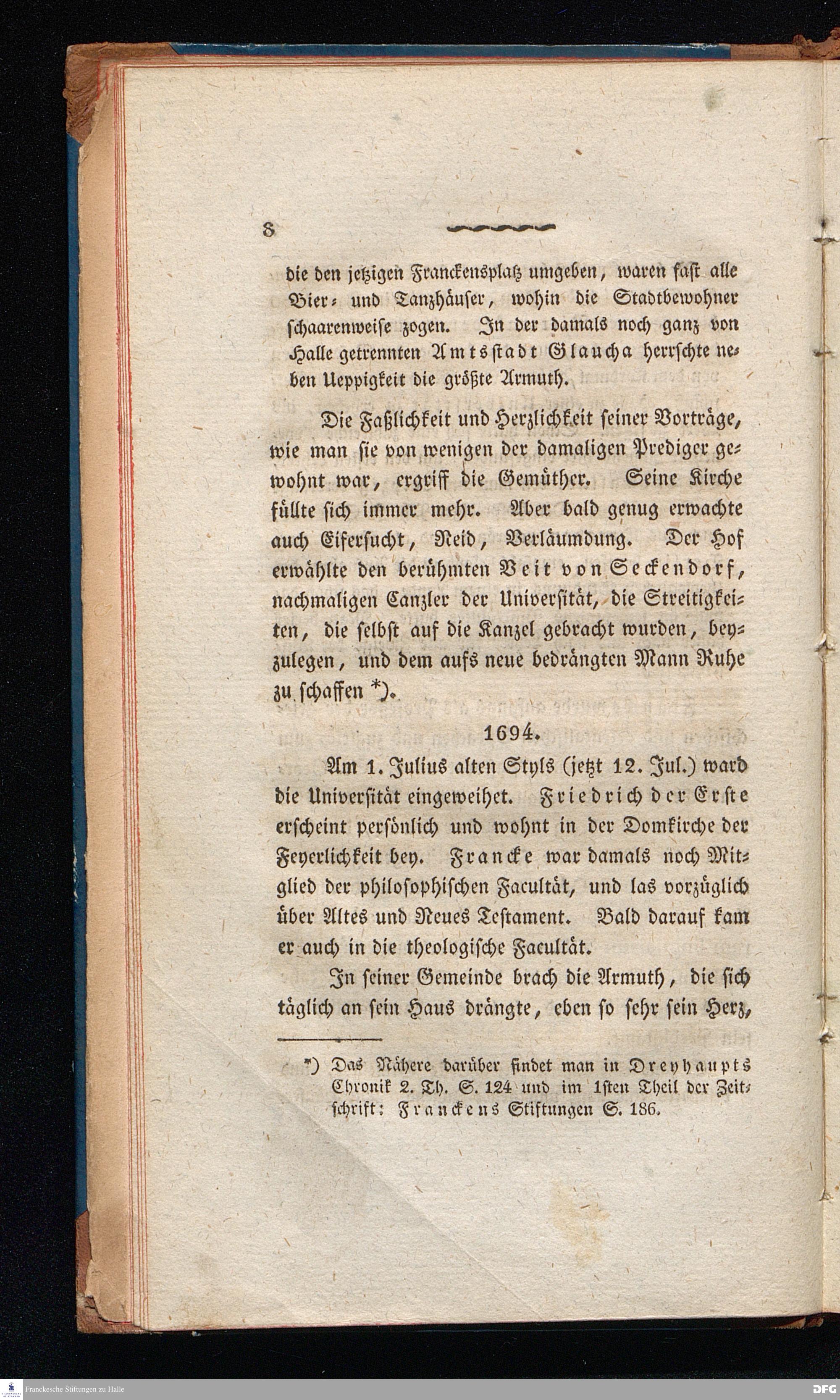 Actenmäsziger Bericht über das dem Gründer des Hallischen Waisenhauses August Hermann Francke errichtete Denkmal. Nebst einer chronologischen Darstellung seines Lebens und Wirkens und der bey der Enthüllung des Standbildes gehaltenen Einweihungs-Rede.