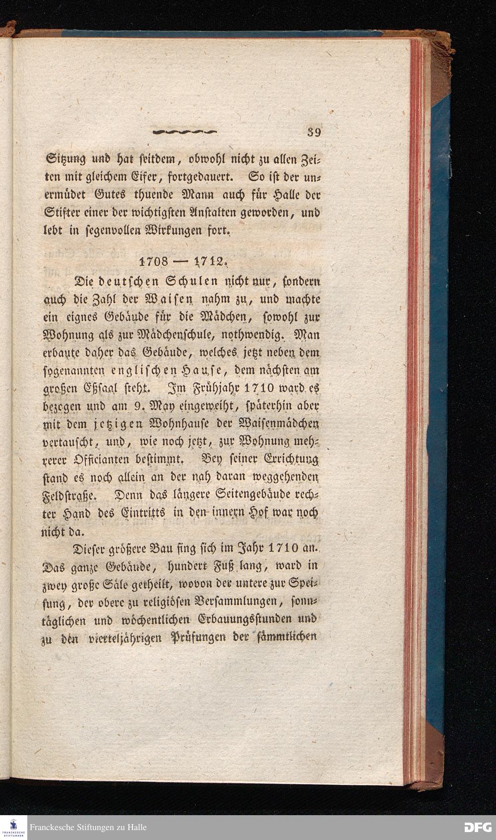 Actenmäsziger Bericht über das dem Gründer des Hallischen Waisenhauses August Hermann Francke errichtete Denkmal. Nebst einer chronologischen Darstellung seines Lebens und Wirkens und der bey der Enthüllung des Standbildes gehaltenen Einweihungs-Rede.