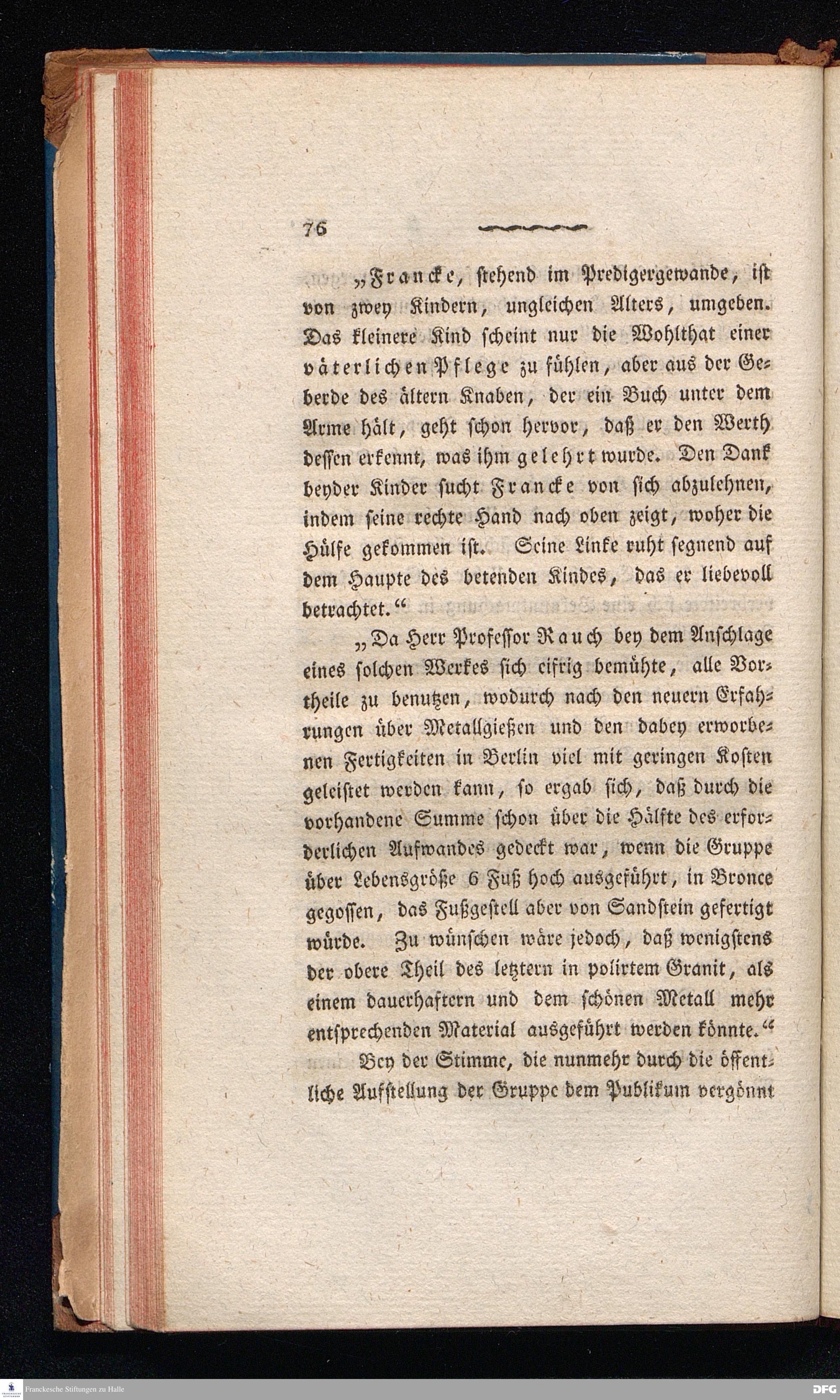 Actenmäsziger Bericht über das dem Gründer des Hallischen Waisenhauses August Hermann Francke errichtete Denkmal. Nebst einer chronologischen Darstellung seines Lebens und Wirkens und der bey der Enthüllung des Standbildes gehaltenen Einweihungs-Rede.