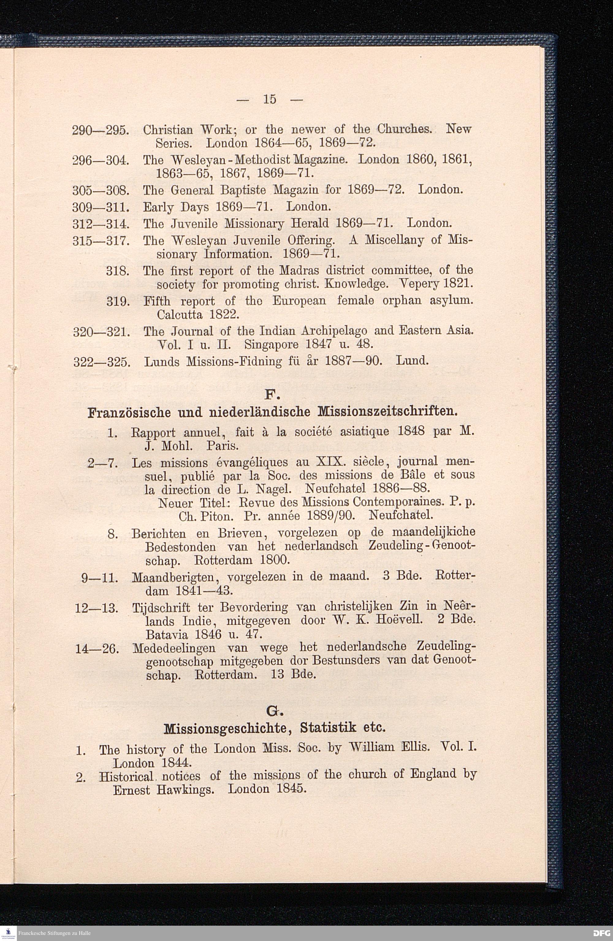 F. Französische und niederländische Missionszeitschriften.