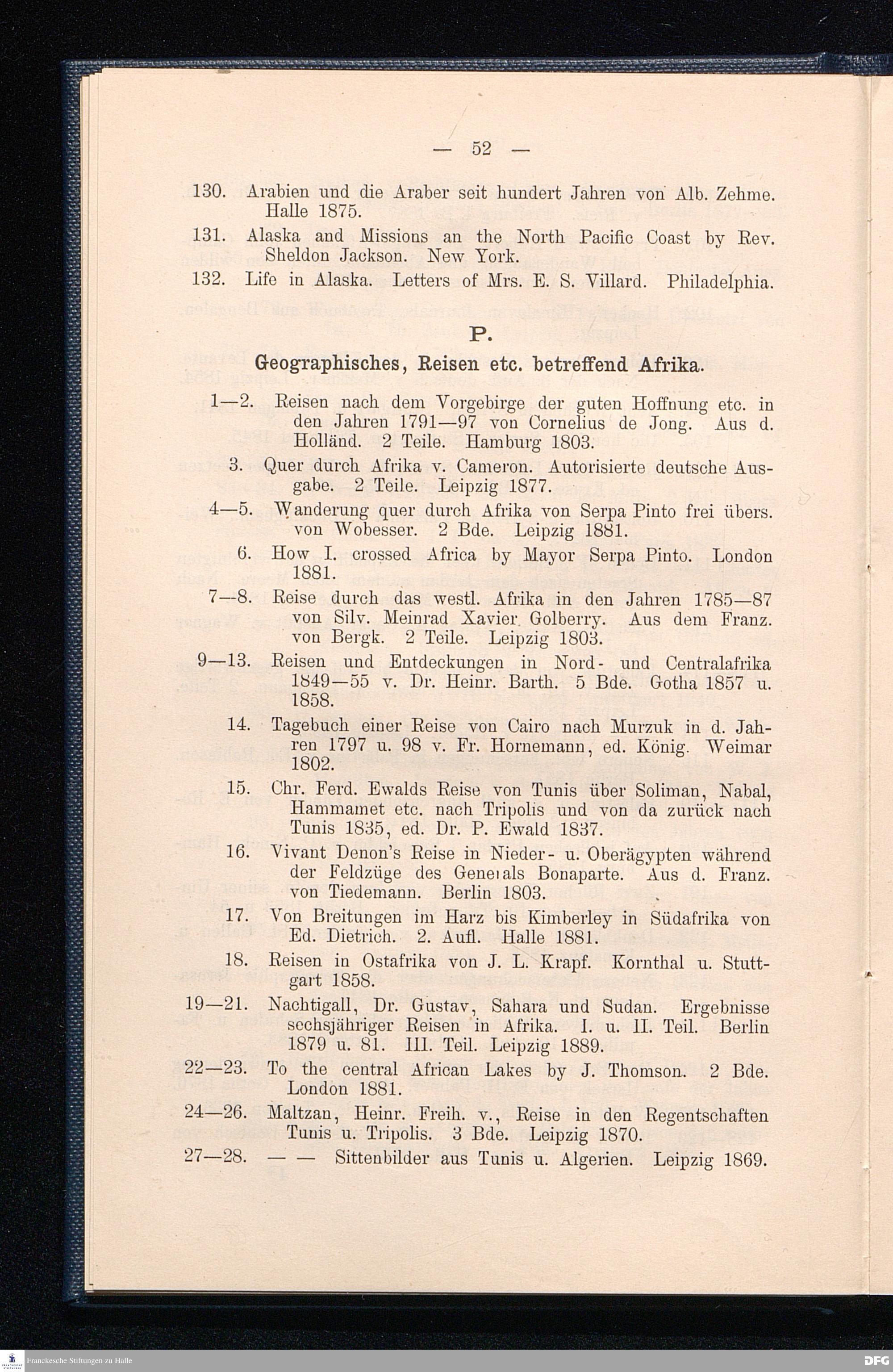 P. Geographisches, Reisen etc. betreffend Afrika.
