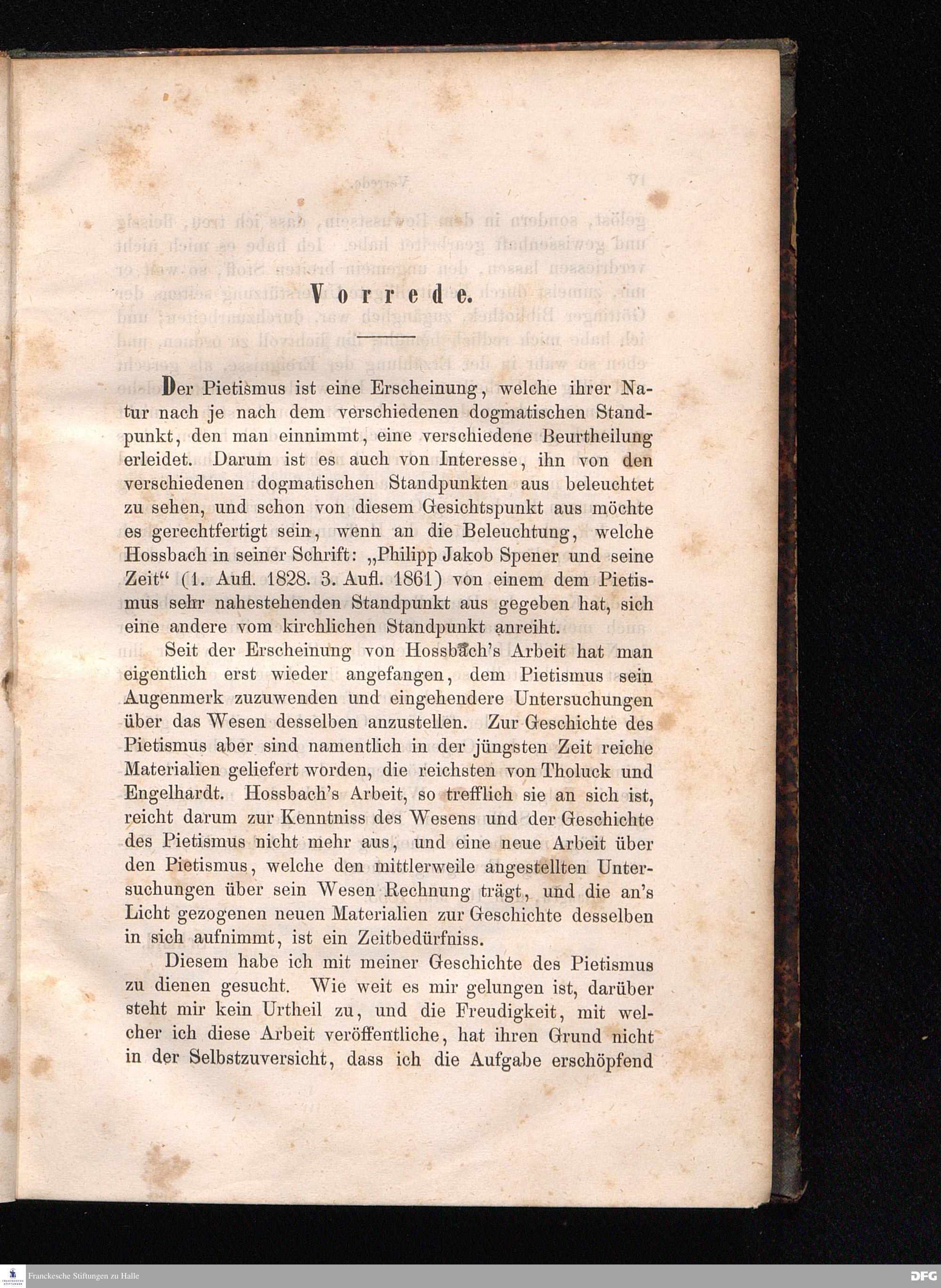 Cap. I. Speners Leben bis zu seiner Berufung nach Frankfurt a/M. - die collegia pietatis - die pia desideria - Conrad Dilefeld.