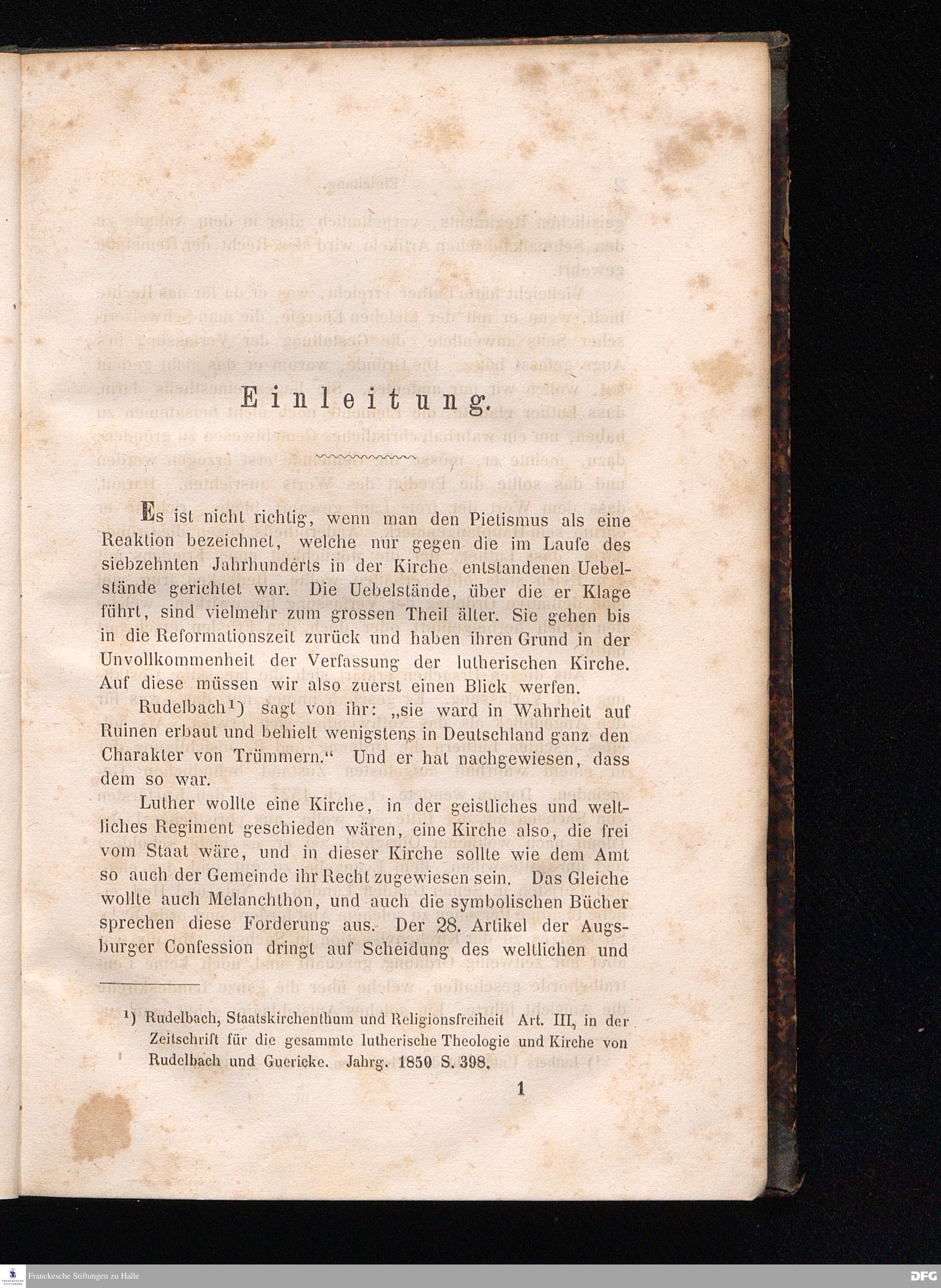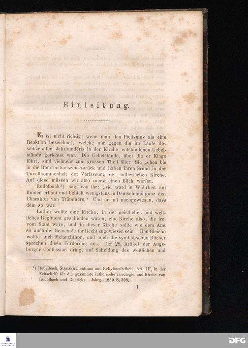 Cap. I. Speners Leben bis zu seiner Berufung nach Frankfurt a/M. - die collegia pietatis - die pia desideria - Conrad Dilefeld.