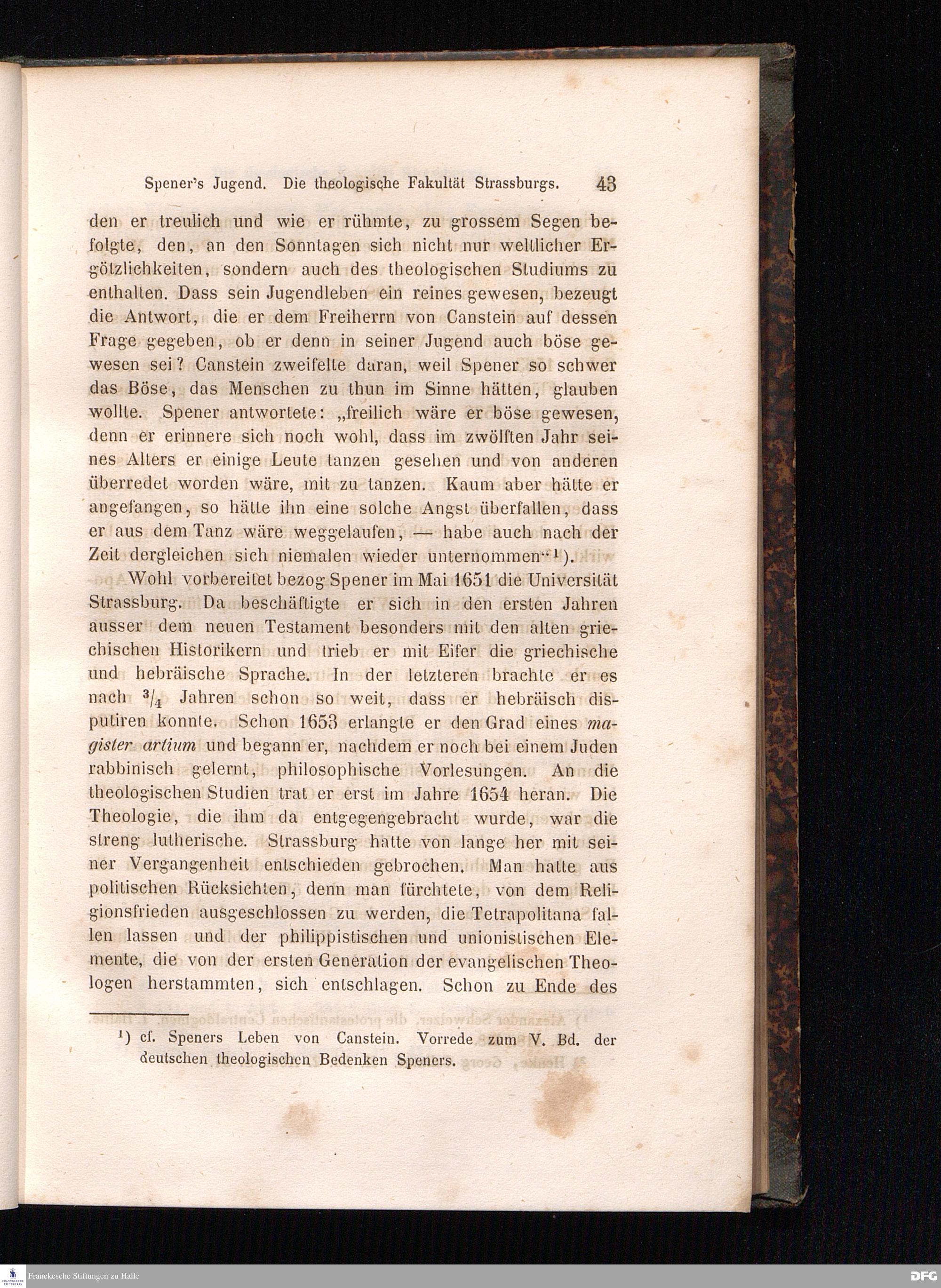 Cap. I. Speners Leben bis zu seiner Berufung nach Frankfurt a/M. - die collegia pietatis - die pia desideria - Conrad Dilefeld.