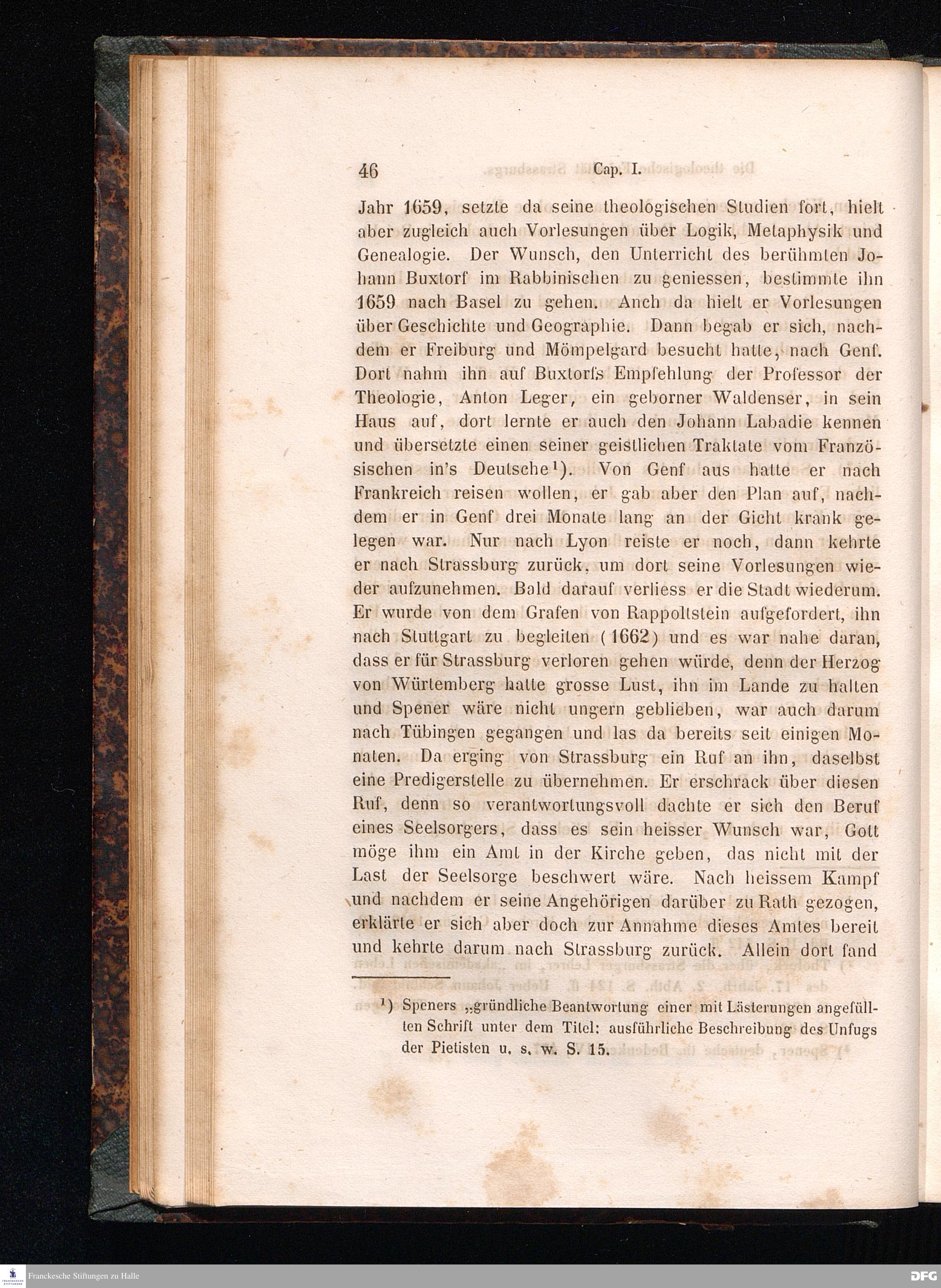 Cap. I. Speners Leben bis zu seiner Berufung nach Frankfurt a/M. - die collegia pietatis - die pia desideria - Conrad Dilefeld.