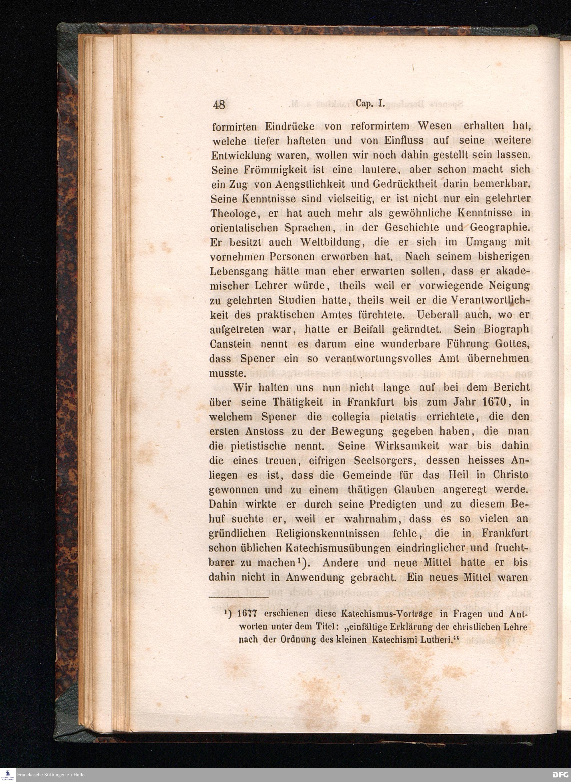 Cap. I. Speners Leben bis zu seiner Berufung nach Frankfurt a/M. - die collegia pietatis - die pia desideria - Conrad Dilefeld.