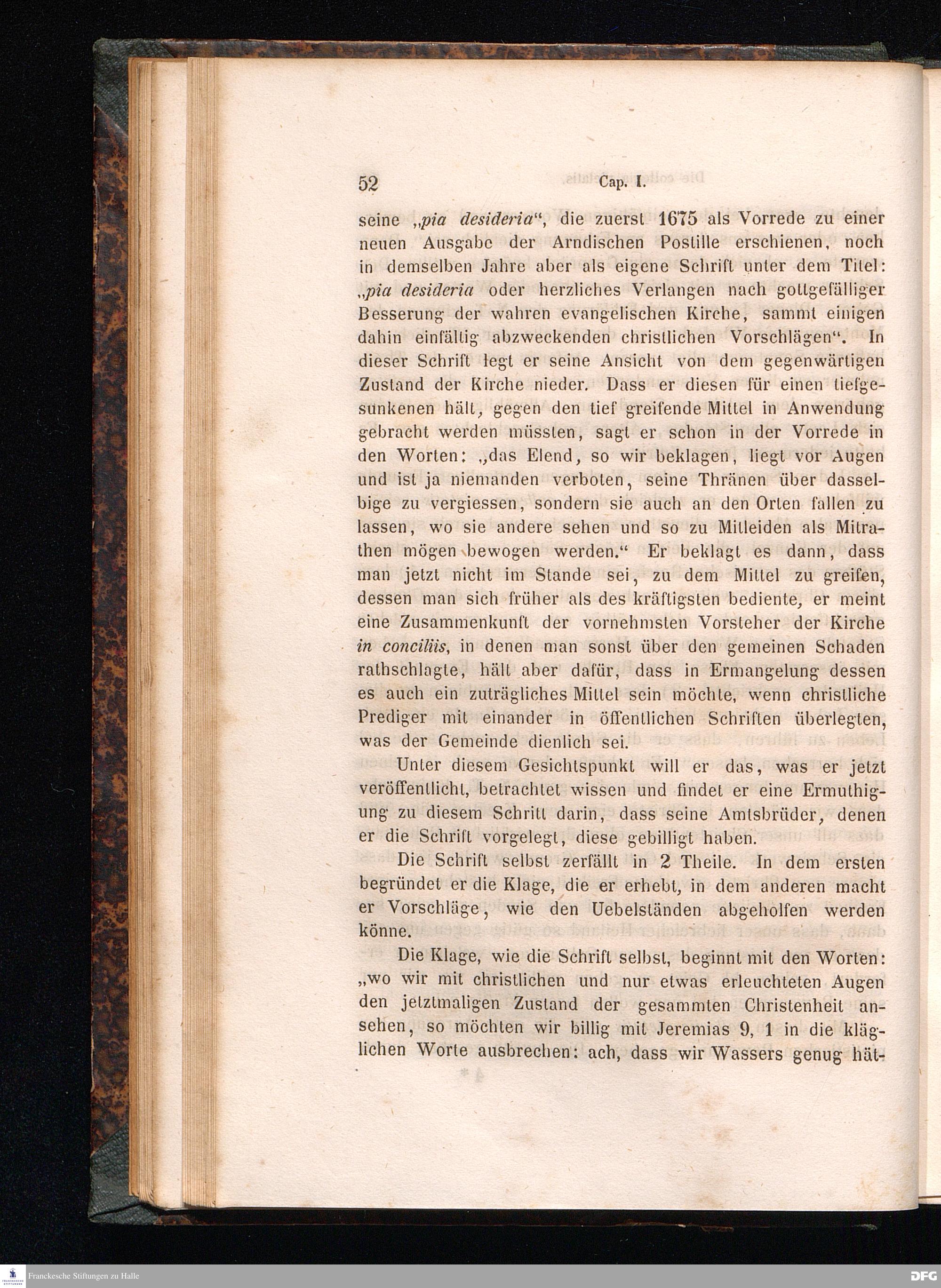 Cap. I. Speners Leben bis zu seiner Berufung nach Frankfurt a/M. - die collegia pietatis - die pia desideria - Conrad Dilefeld.