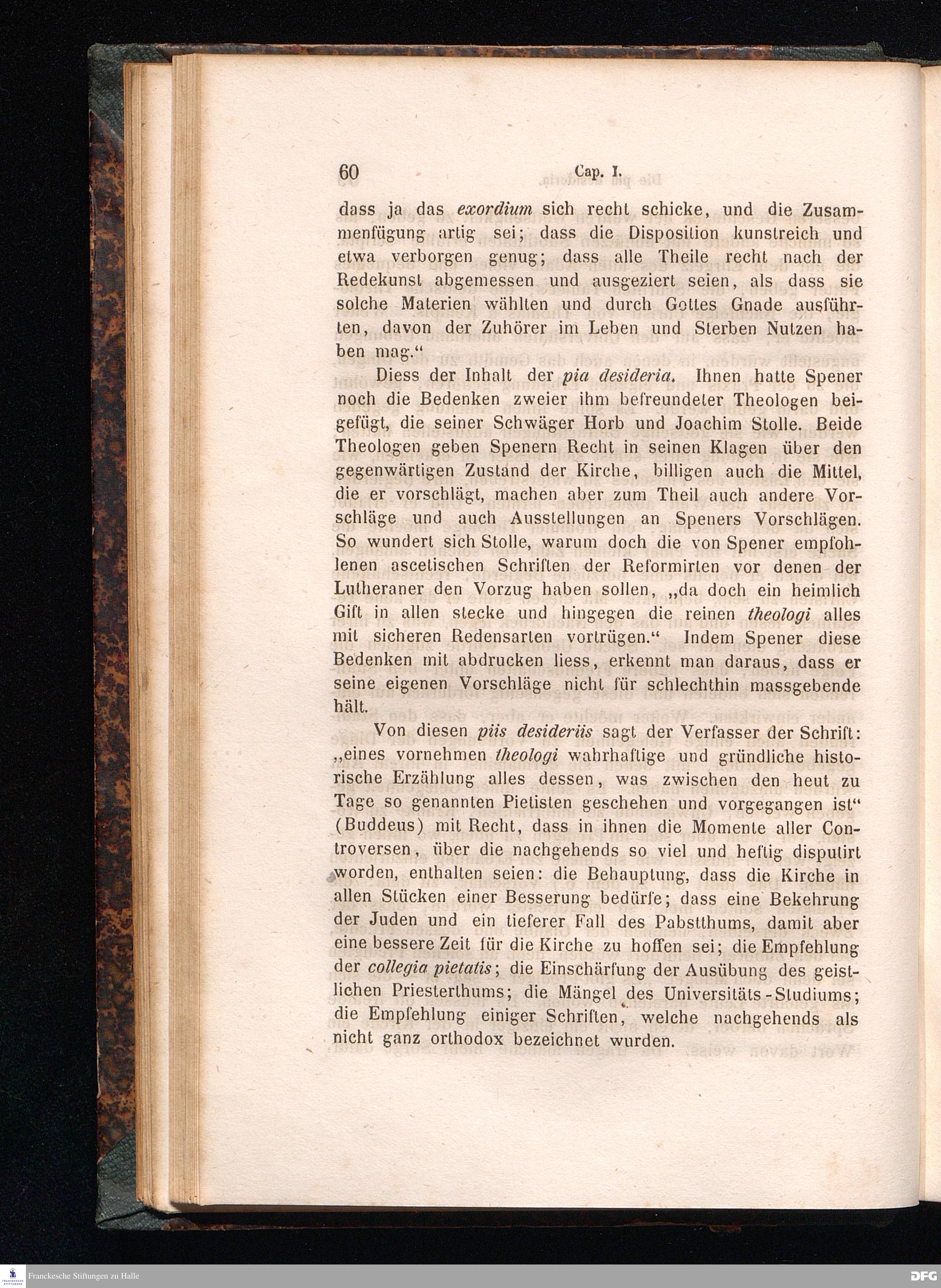 Cap. I. Speners Leben bis zu seiner Berufung nach Frankfurt a/M. - die collegia pietatis - die pia desideria - Conrad Dilefeld.
