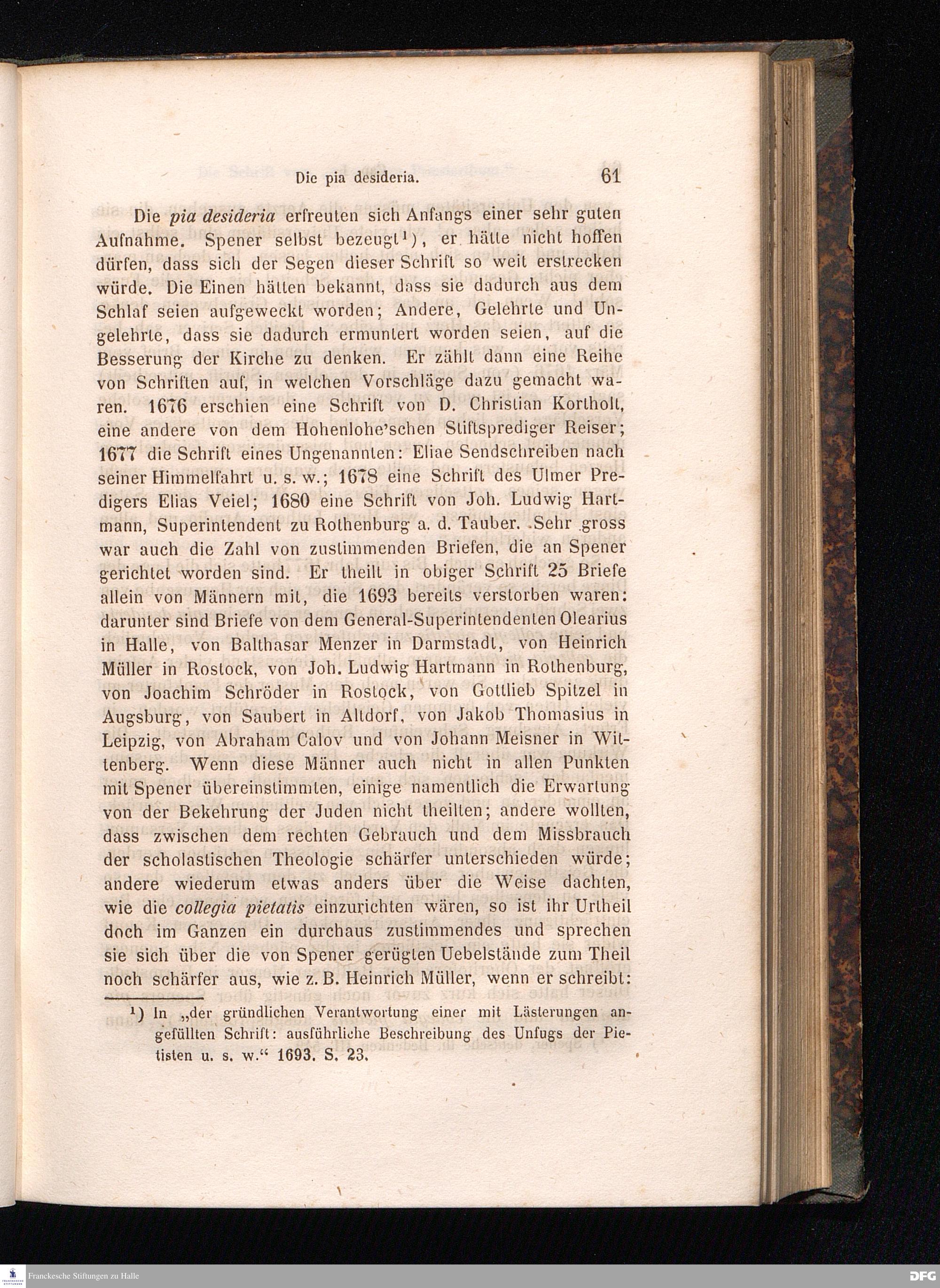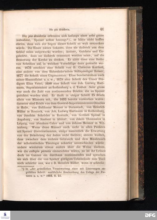 Cap. I. Speners Leben bis zu seiner Berufung nach Frankfurt a/M. - die collegia pietatis - die pia desideria - Conrad Dilefeld.