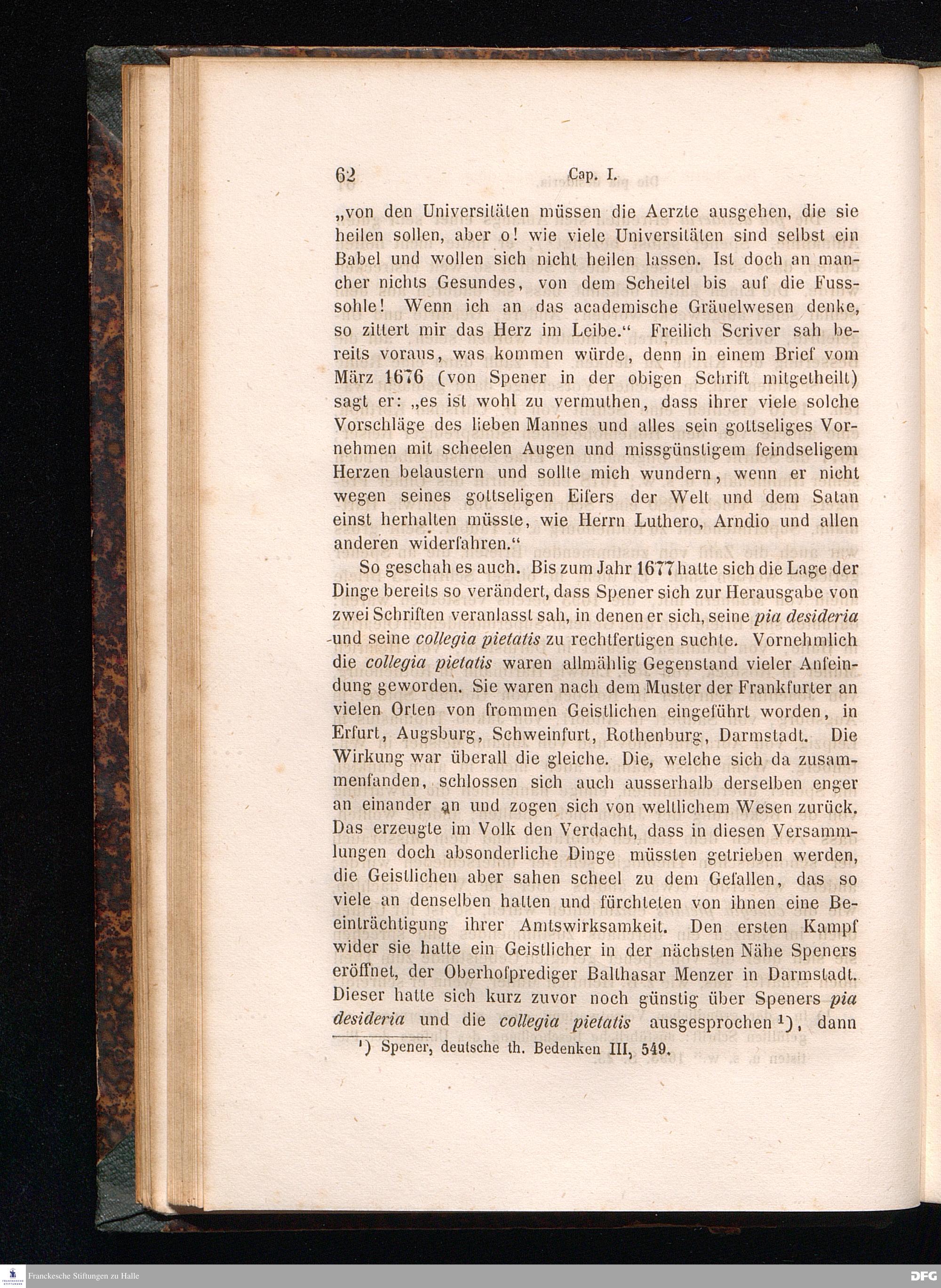 Cap. I. Speners Leben bis zu seiner Berufung nach Frankfurt a/M. - die collegia pietatis - die pia desideria - Conrad Dilefeld.