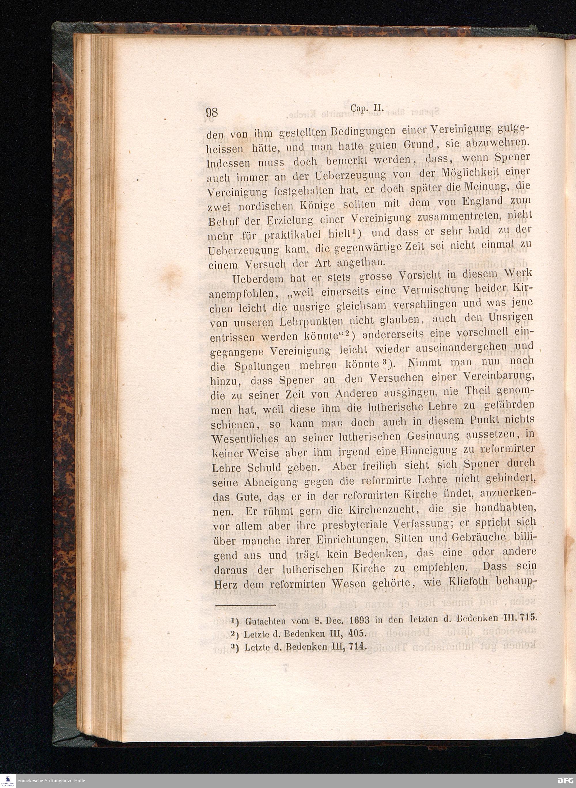 Cap. I. Speners Leben bis zu seiner Berufung nach Frankfurt a/M. - die collegia pietatis - die pia desideria - Conrad Dilefeld.