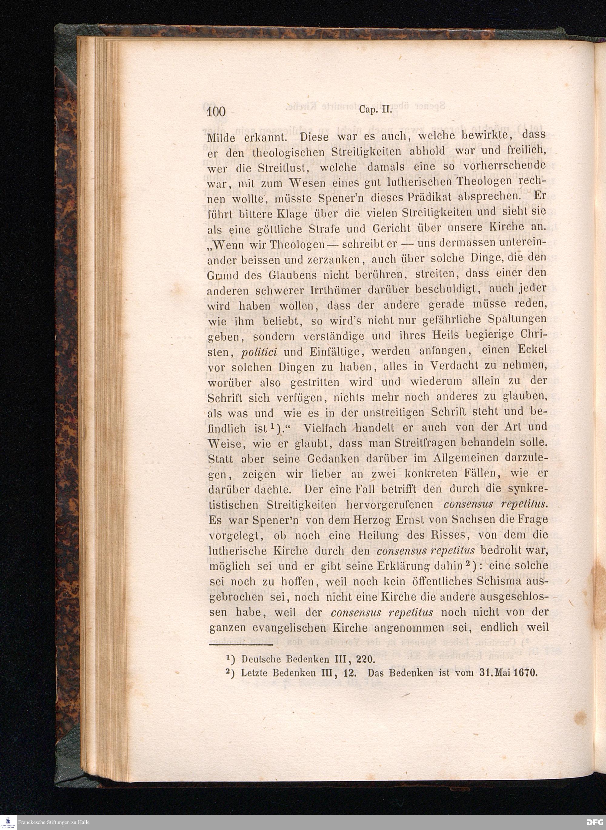 Cap. I. Speners Leben bis zu seiner Berufung nach Frankfurt a/M. - die collegia pietatis - die pia desideria - Conrad Dilefeld.