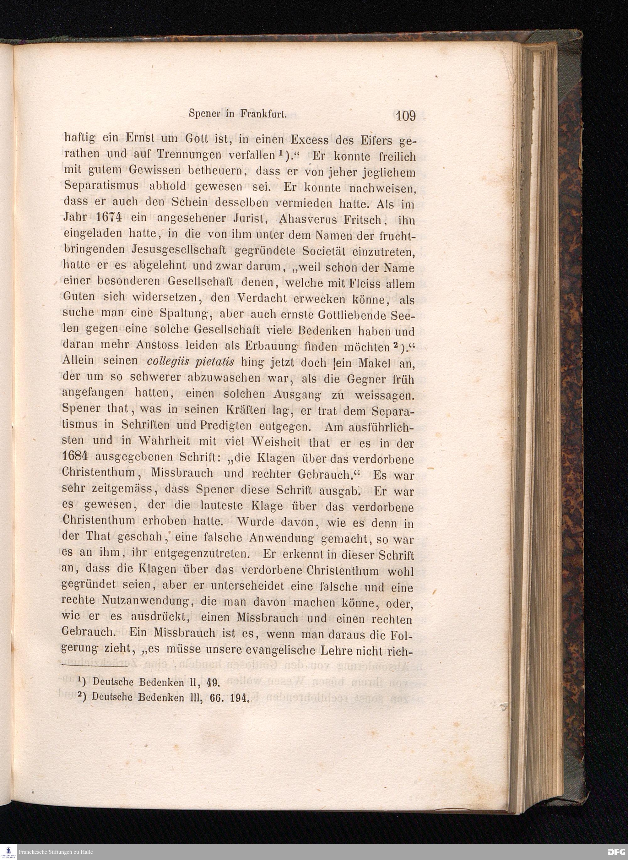 Cap. I. Speners Leben bis zu seiner Berufung nach Frankfurt a/M. - die collegia pietatis - die pia desideria - Conrad Dilefeld.