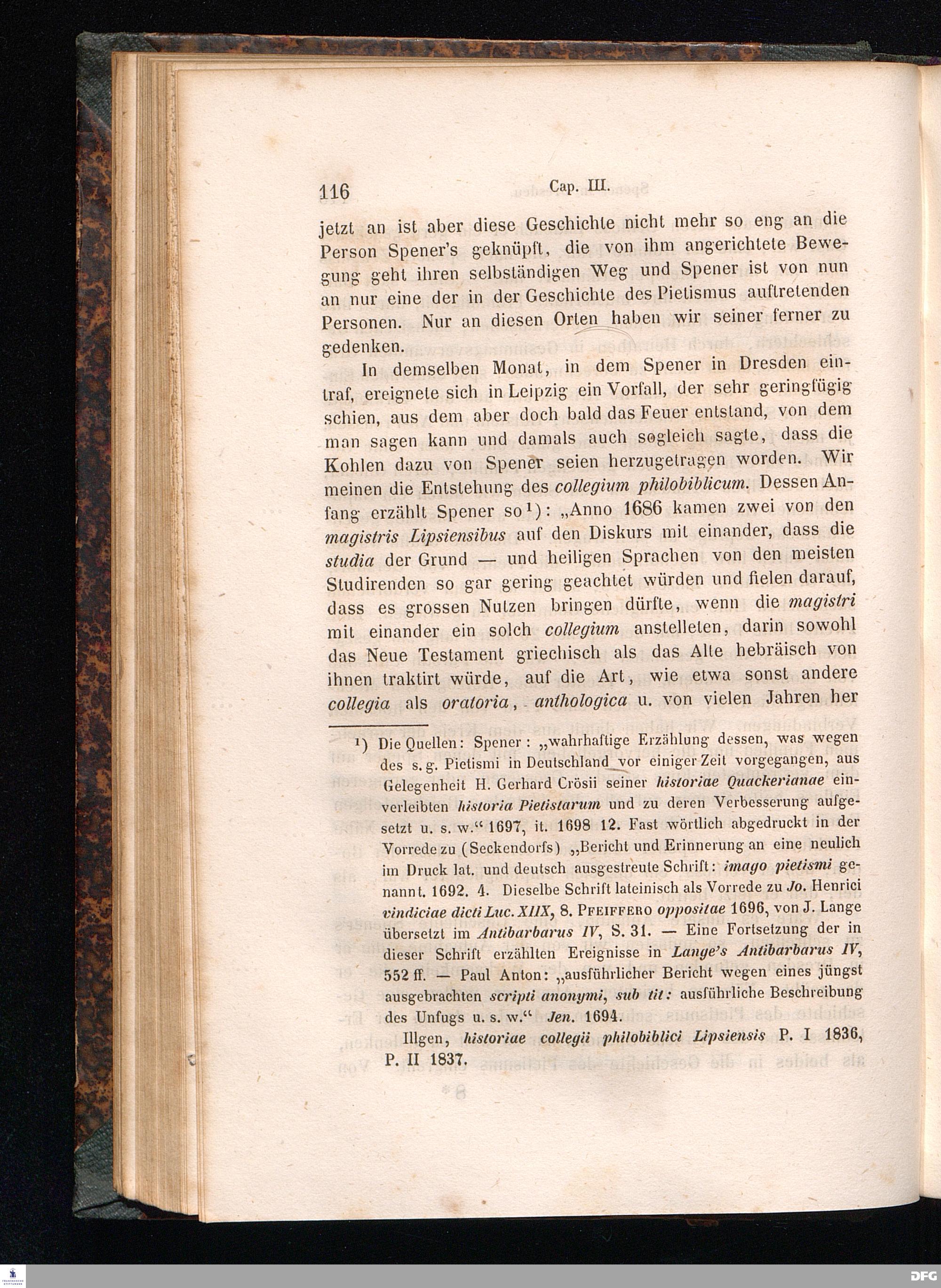 Cap. I. Speners Leben bis zu seiner Berufung nach Frankfurt a/M. - die collegia pietatis - die pia desideria - Conrad Dilefeld.
