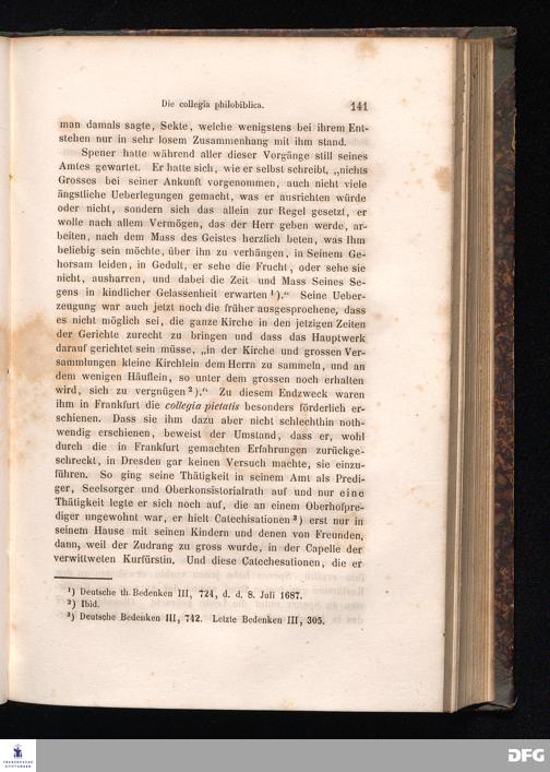 Cap. III. Spener's Wirksamkeit in der letzten Zeit in Frankfurt. - Spener, Oberhofprediger in Dresden. - Die collegia philobiblica in Leipzig. - Spener's Entlassung aus Dresden. - Die imago pietatis.