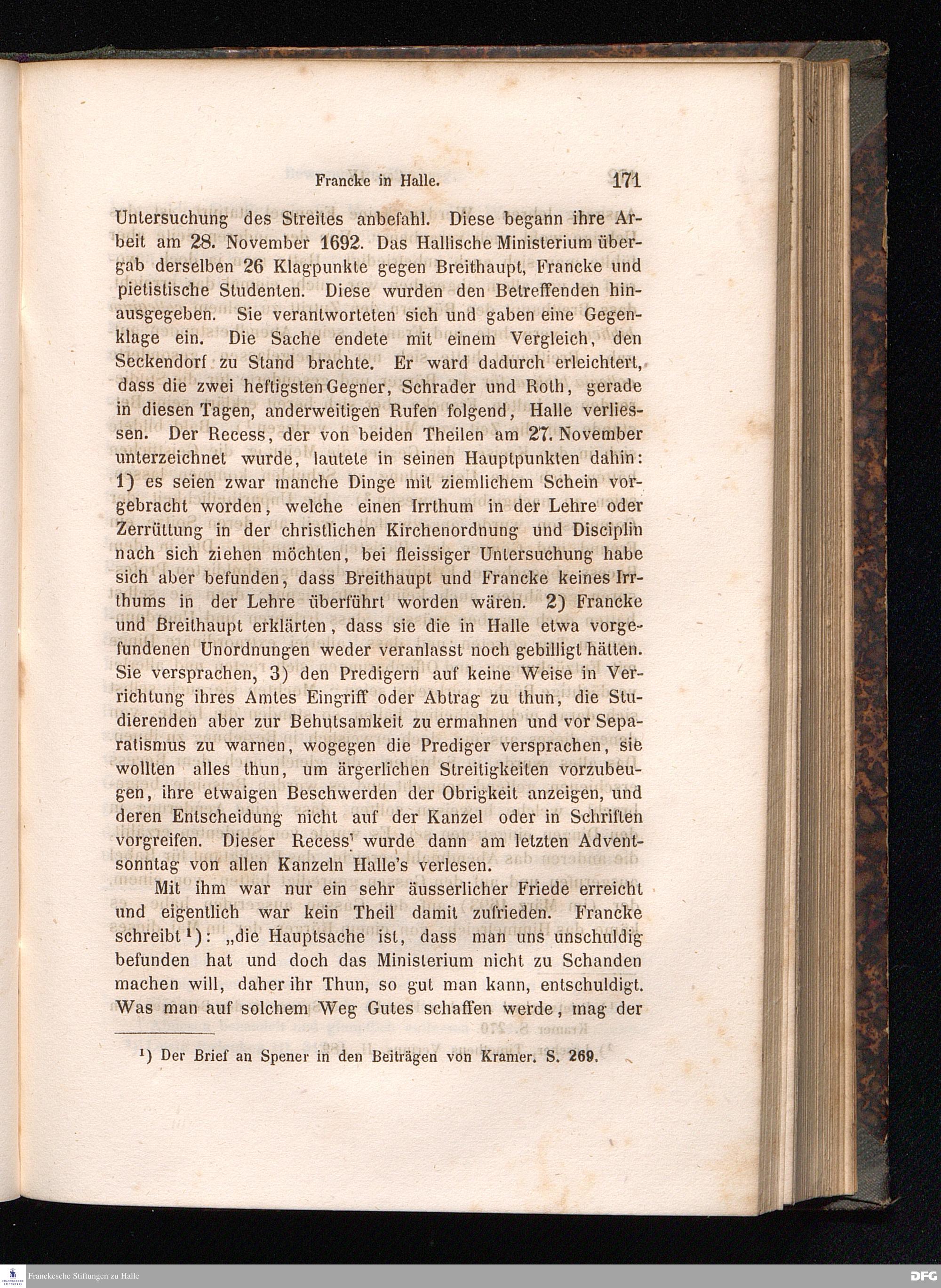 Cap. VII. A. H. Francke und der Pietismus in Halle. - Spener in Berlin. - Der Baron Canstein. - Die Beziehungen zwischen Berlin und Halle. - Die Ausartungen des Pietismus. - Die Streitigkeiten Francke's mit Mayer.