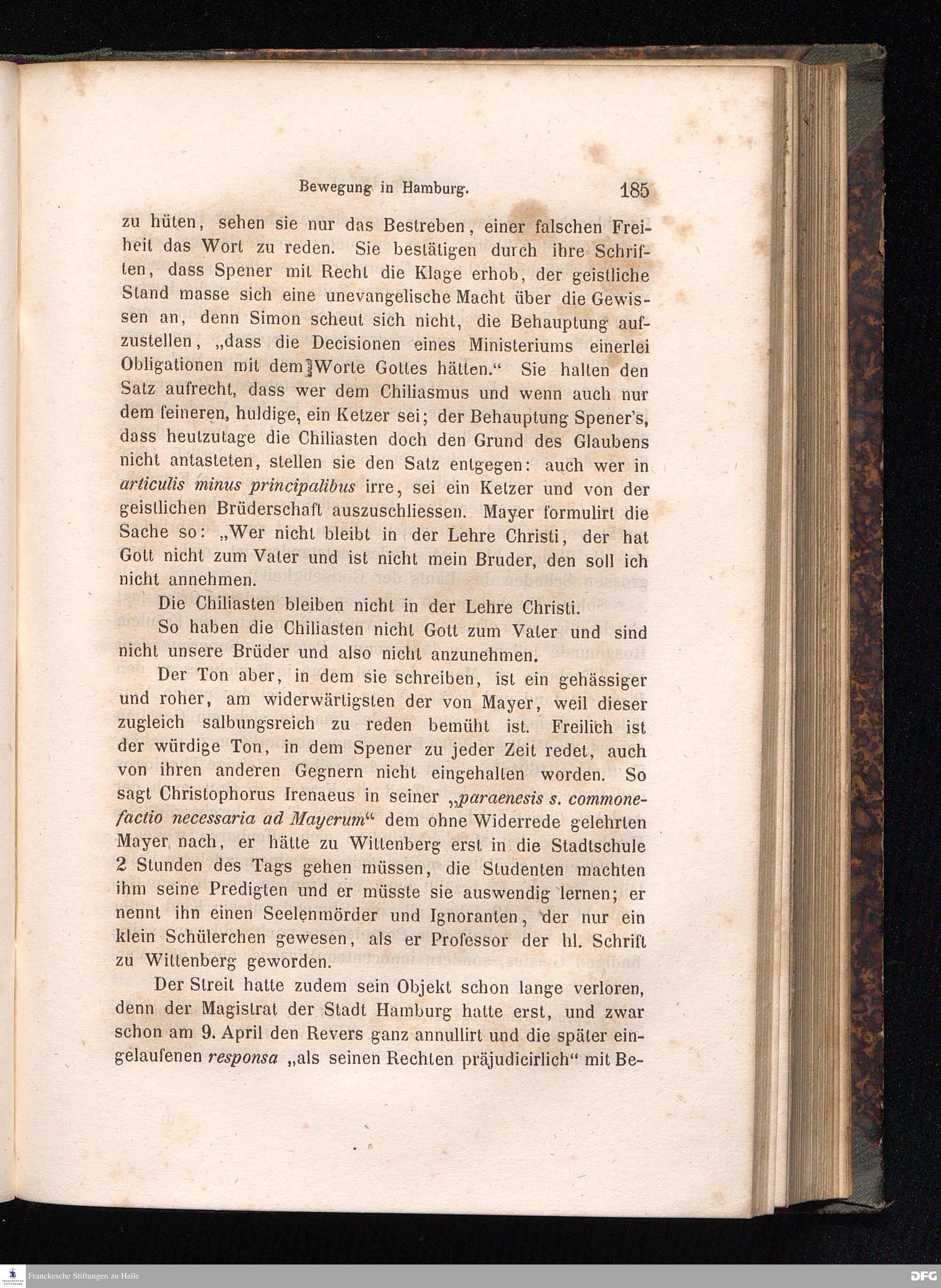 Cap. V. Die Einzelangriffe auf Spener von Schelwig, Carpzov, Alberti, der Wittenberger Fakultät.