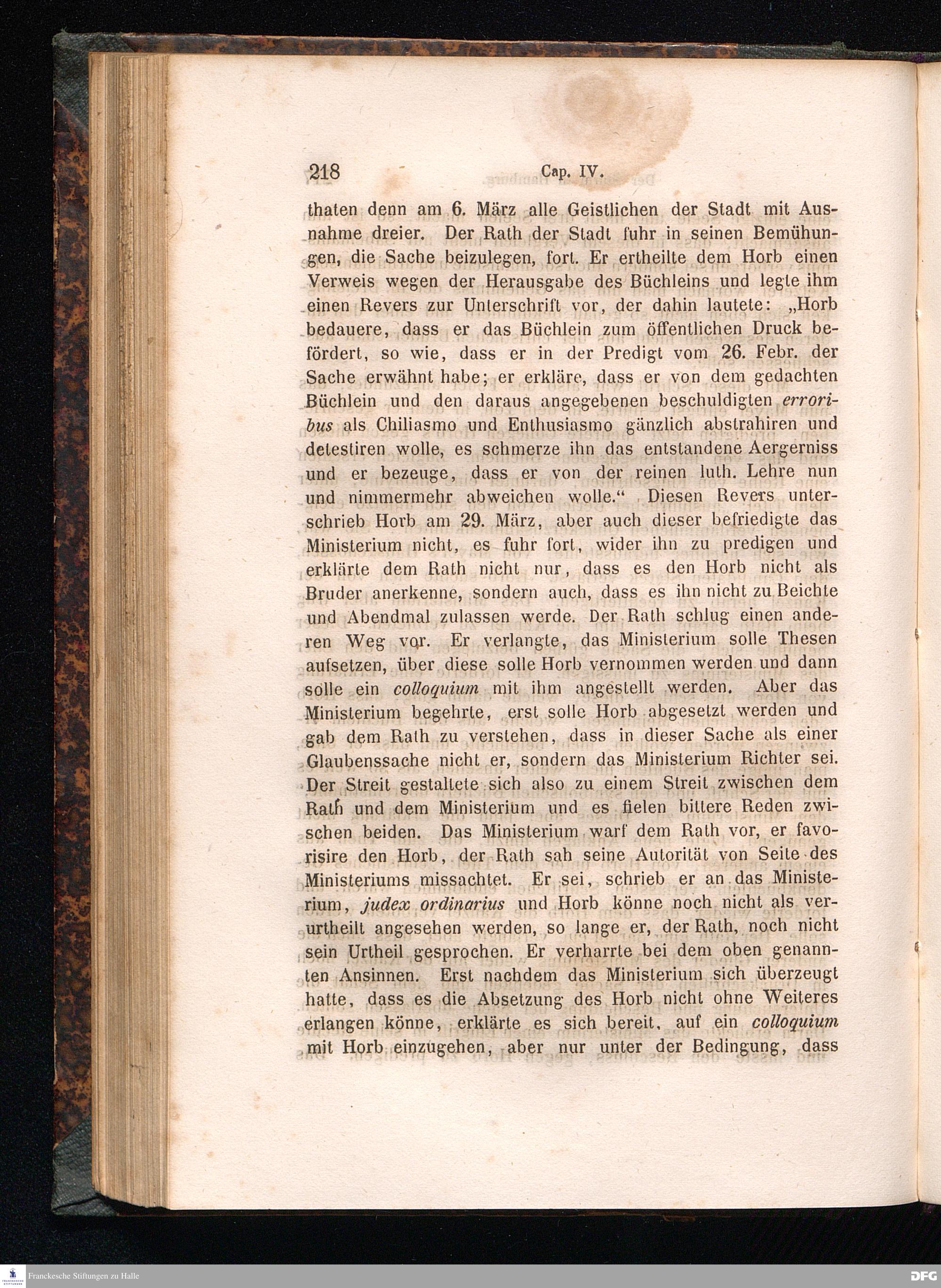 Cap. IV. Die auf Anlass des Pietismus entstandenen Bewegungen in Darmstadt, Erfurt, Halle, Hamburg und Halberstadt - die "ausführliche Beschreibung des Unfungs, welchen die Pietisten angerichtet".