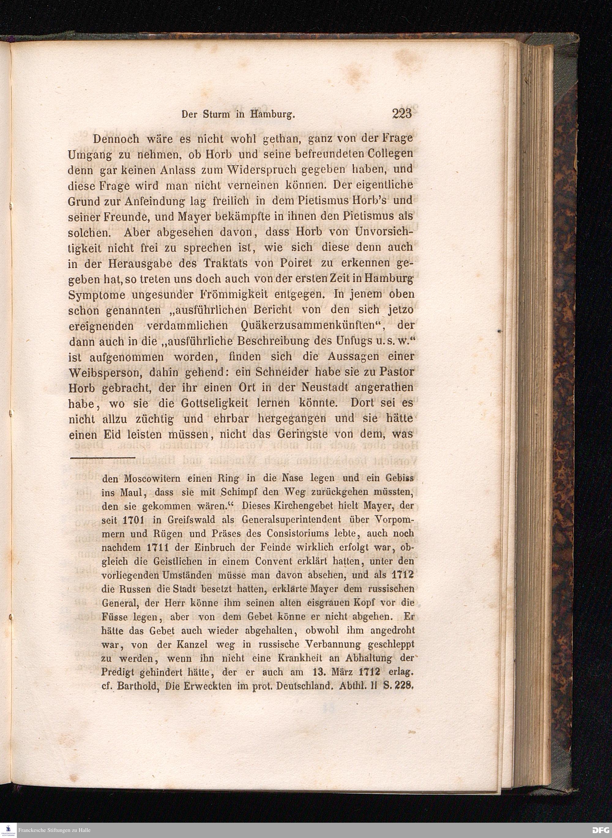 Cap. IV. Die auf Anlass des Pietismus entstandenen Bewegungen in Darmstadt, Erfurt, Halle, Hamburg und Halberstadt - die "ausführliche Beschreibung des Unfungs, welchen die Pietisten angerichtet".