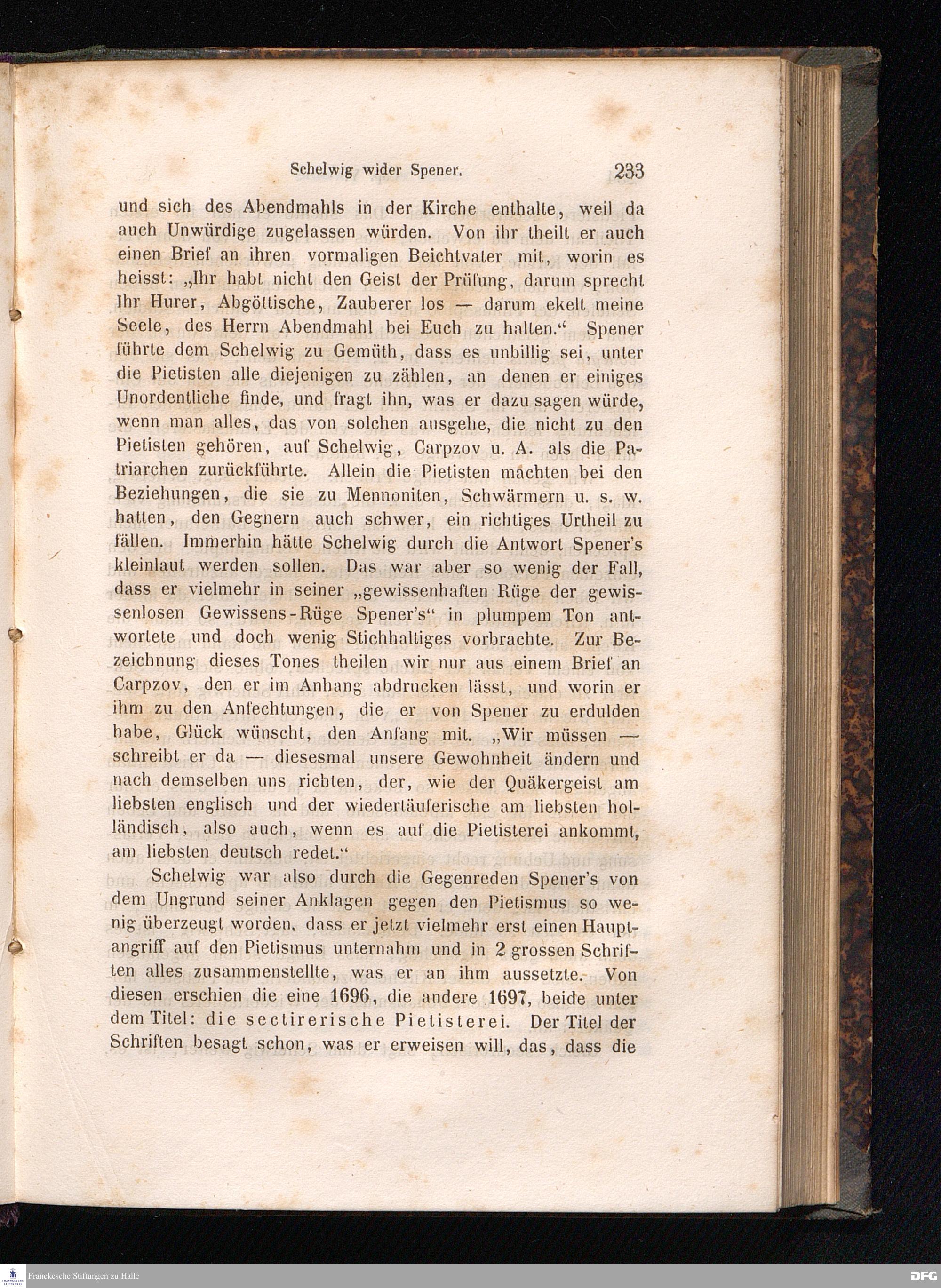 Cap. V. Die Einzelangriffe auf Spener von Schelwig, Carpzov, Alberti, der Wittenberger Fakultät.