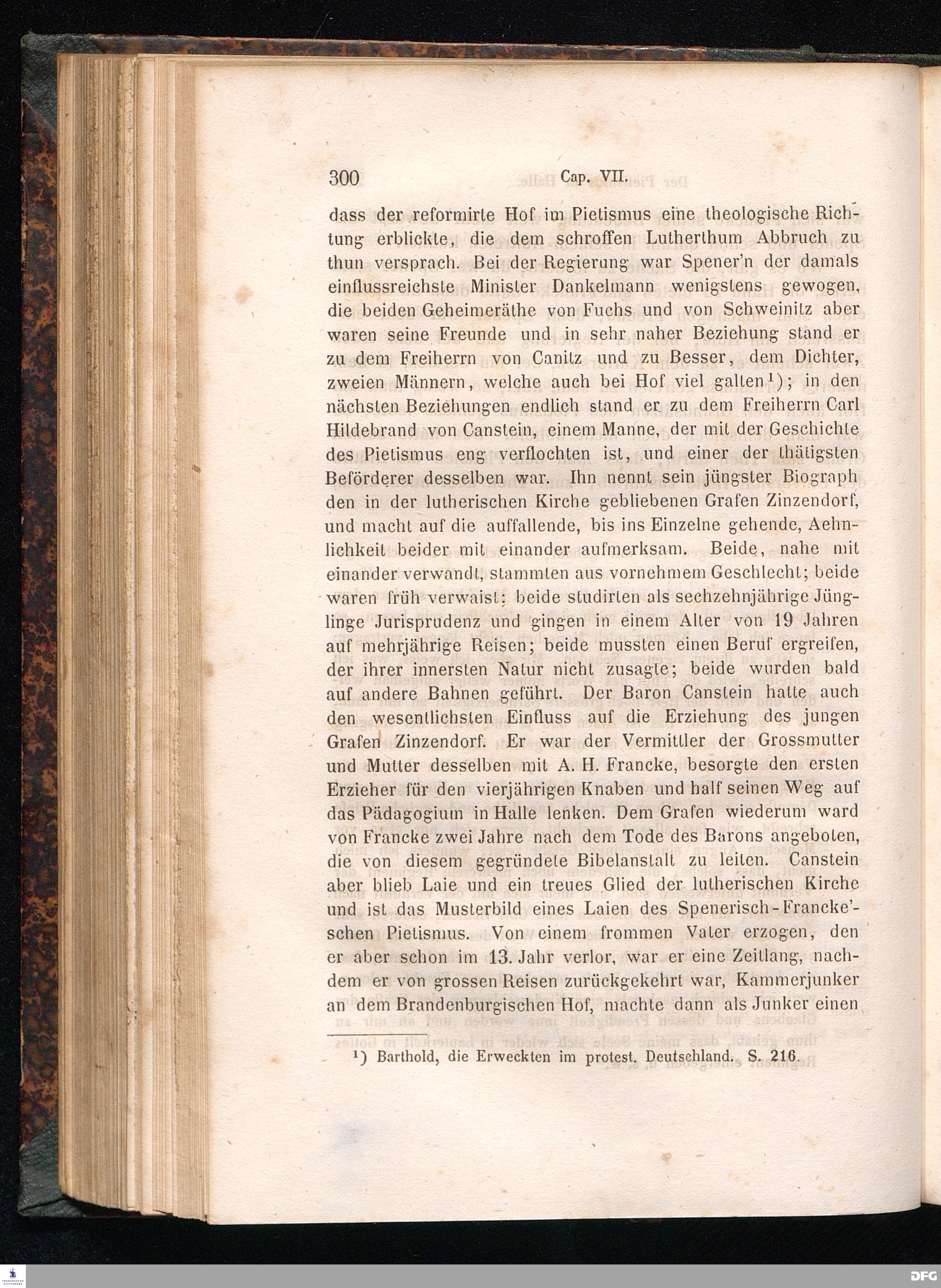 Cap. VII. A. H. Francke und der Pietismus in Halle. - Spener in Berlin. - Der Baron Canstein. - Die Beziehungen zwischen Berlin und Halle. - Die Ausartungen des Pietismus. - Die Streitigkeiten Francke's mit Mayer.