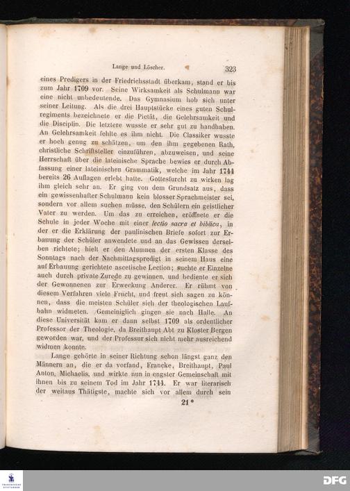 Cap. VIII. Lange und Löscher. - Die Versuche einer Vereinbarung zwischen den Orthodoxen und den Pietisten. - Das Erlöschen des Streits.