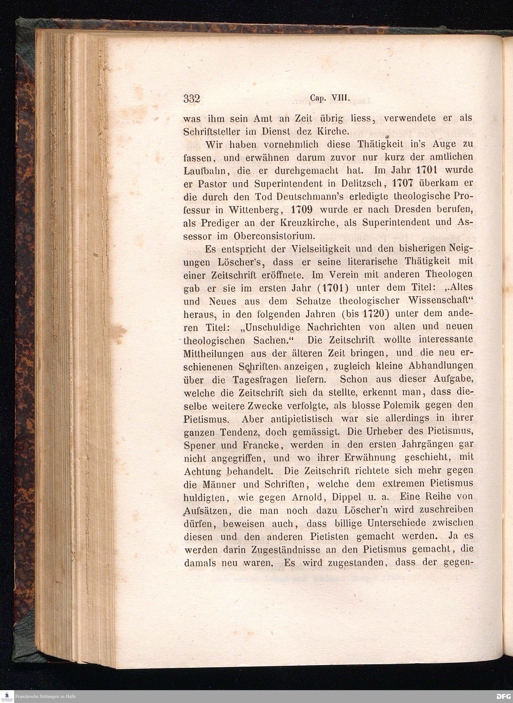 Cap. VII. A. H. Francke und der Pietismus in Halle. - Spener in Berlin. - Der Baron Canstein. - Die Beziehungen zwischen Berlin und Halle. - Die Ausartungen des Pietismus. - Die Streitigkeiten Francke's mit Mayer.