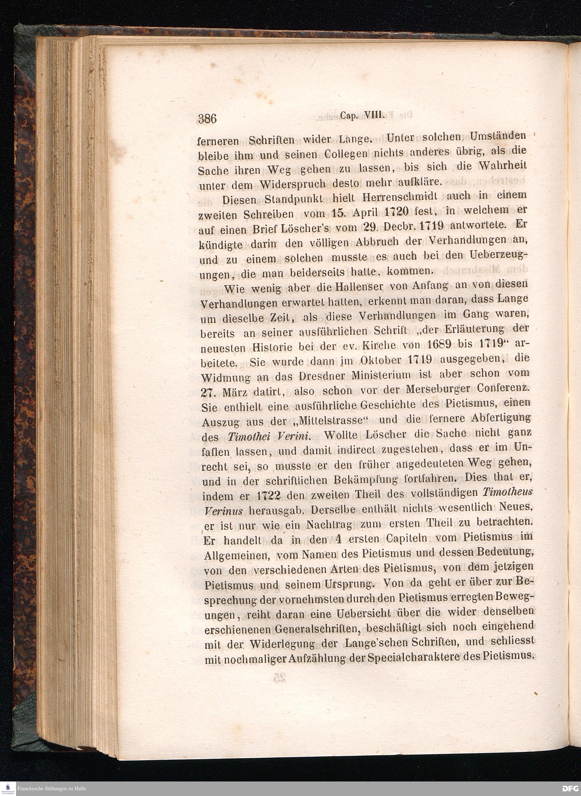 Cap. VIII. Lange und Löscher. - Die Versuche einer Vereinbarung zwischen den Orthodoxen und den Pietisten. - Das Erlöschen des Streits.