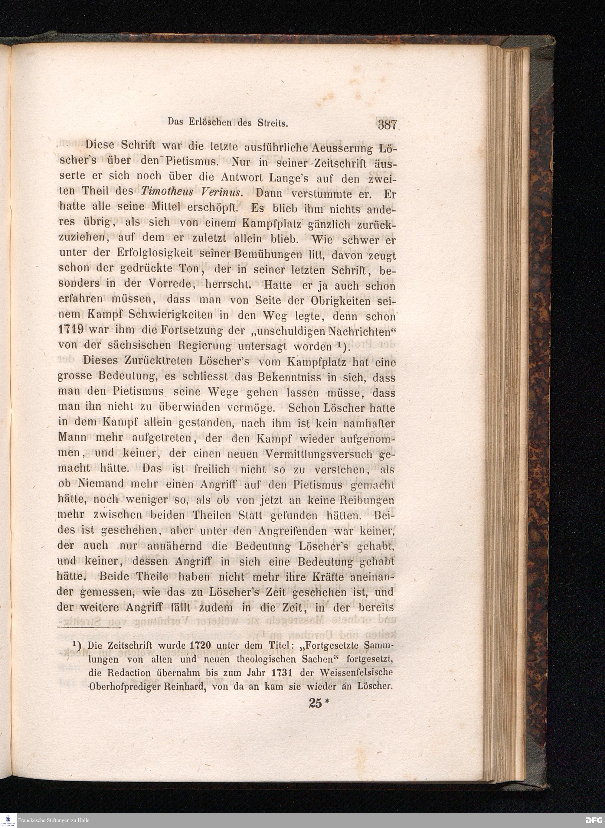 Cap. VIII. Lange und Löscher. - Die Versuche einer Vereinbarung zwischen den Orthodoxen und den Pietisten. - Das Erlöschen des Streits.