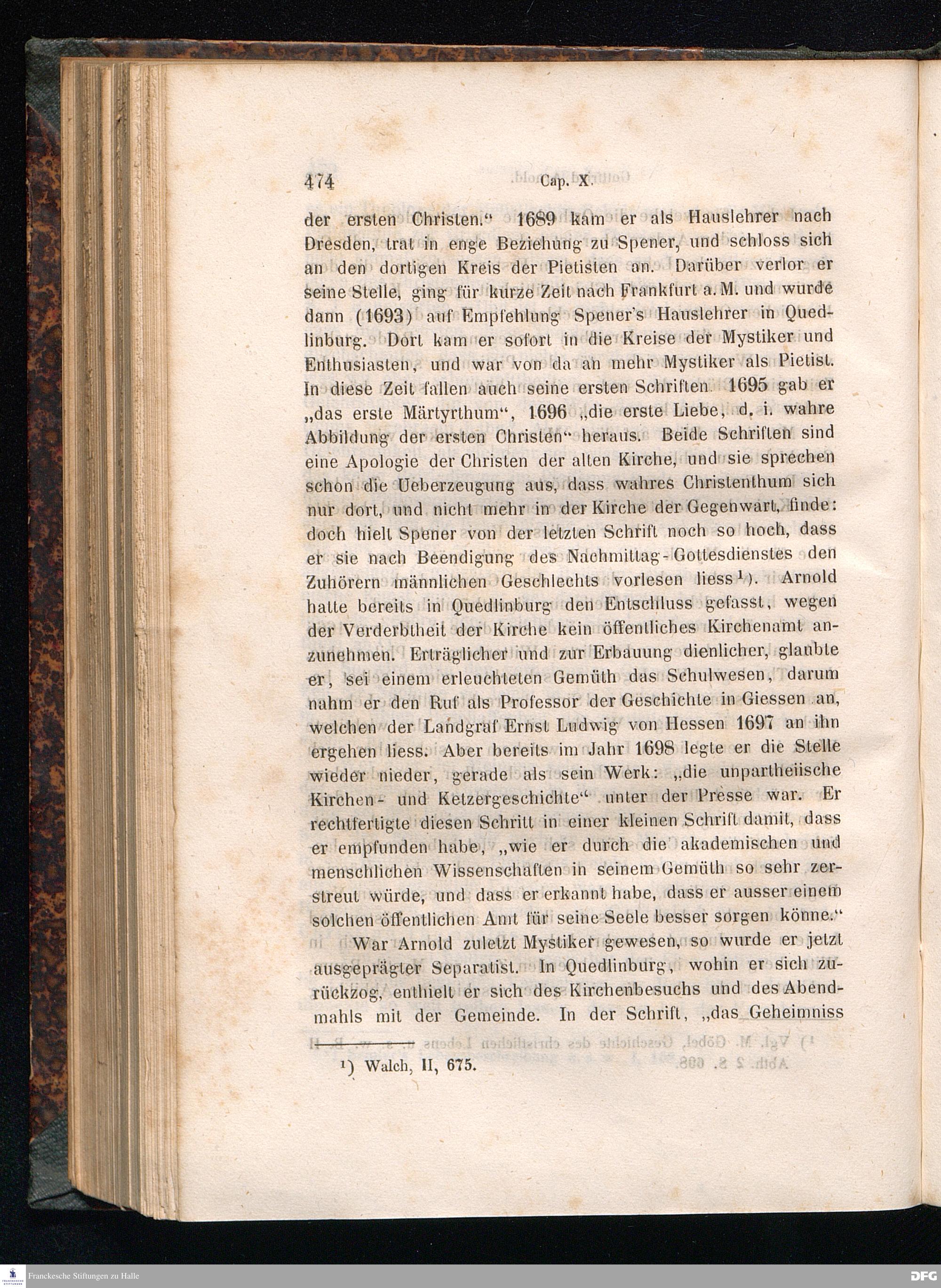 Cap. VII. A. H. Francke und der Pietismus in Halle. - Spener in Berlin. - Der Baron Canstein. - Die Beziehungen zwischen Berlin und Halle. - Die Ausartungen des Pietismus. - Die Streitigkeiten Francke's mit Mayer.