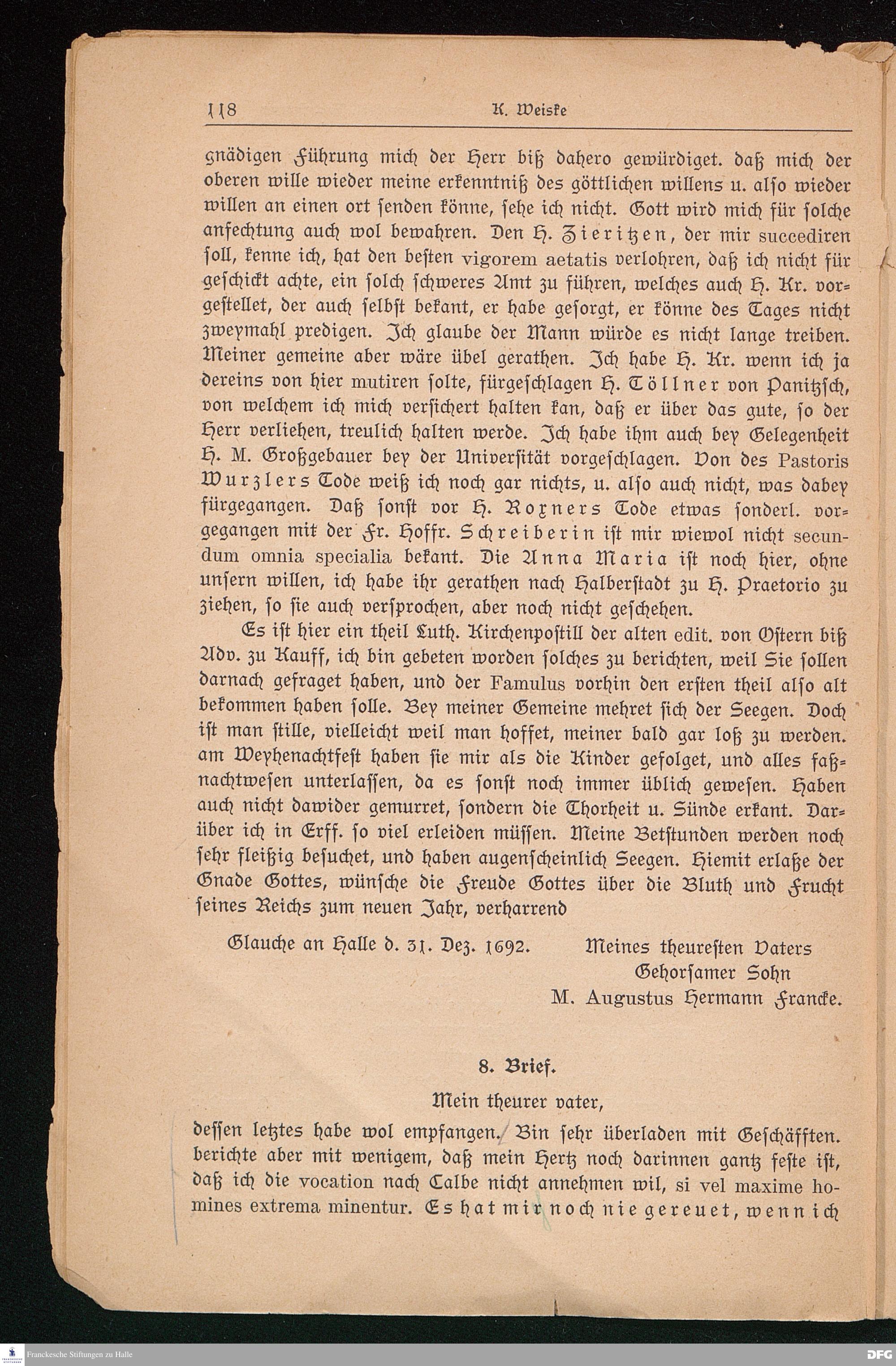 Einunddreißig bisher unveröffentlichte Briefe Aug. Hermann Franckes an Phil. Jac. Spener.