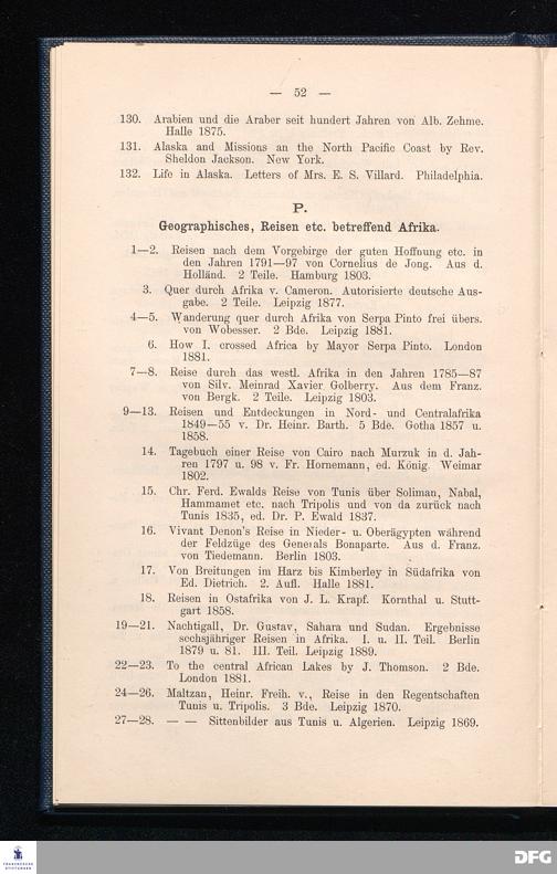P. Geographisches, Reisen etc. betreffend Afrika.